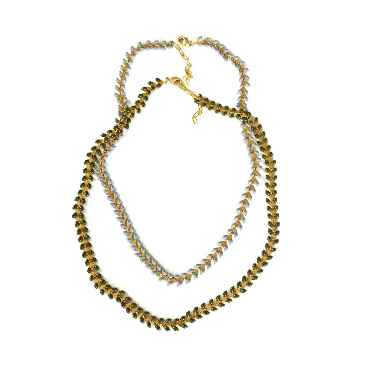 This Women's Chevron Necklace in Chicky Gray by CV Designs combines timeless elegance with modern design. Featuring enamel and gold-plated links, it captures the essence of sophistication, making it a versatile piece for any occasion. Handcrafted in Atlanta, Georgia, this necklace offers a blend of high-quality craftsmanship and chic style. The Chicky Gray color adds a soft, neutral tone that complements any wardrobe, making it a must-have.
