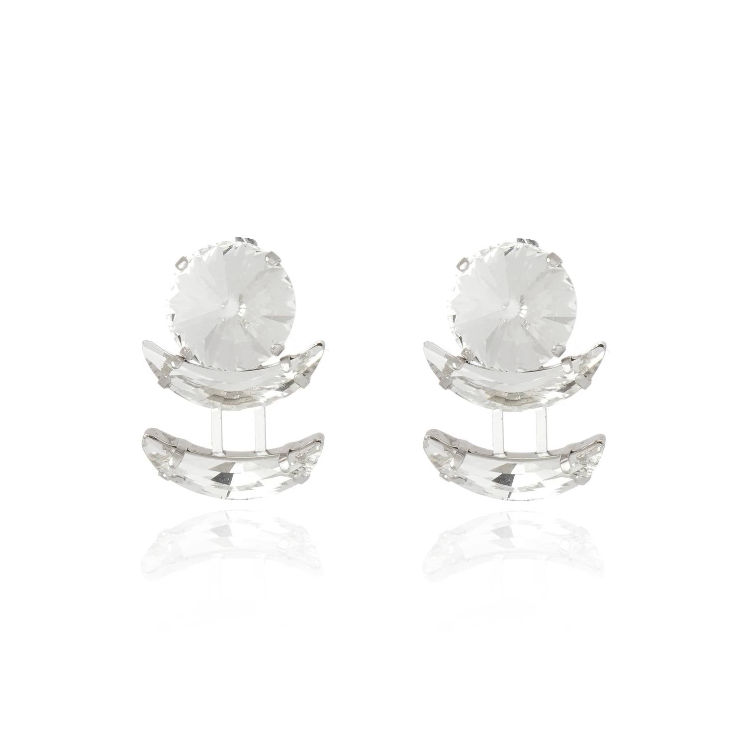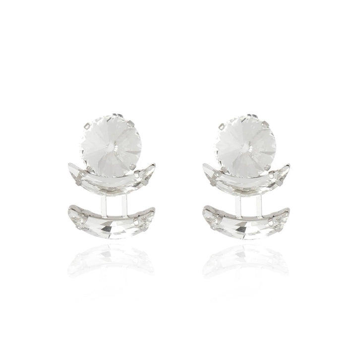 These Helene Moon Drop Earrings in Crystal/Silver by Cristina Sabatini offer an elegant and refined design, symbolizing intuition and femininity. The moon-shaped design features delicate crystal shimmer, offering a timeless and delicate look. Made in Italy and rhodium-plated for extra shine, these earrings are perfect for pairing with other items from the Helene Moon collection for a complete, versatile outfit.