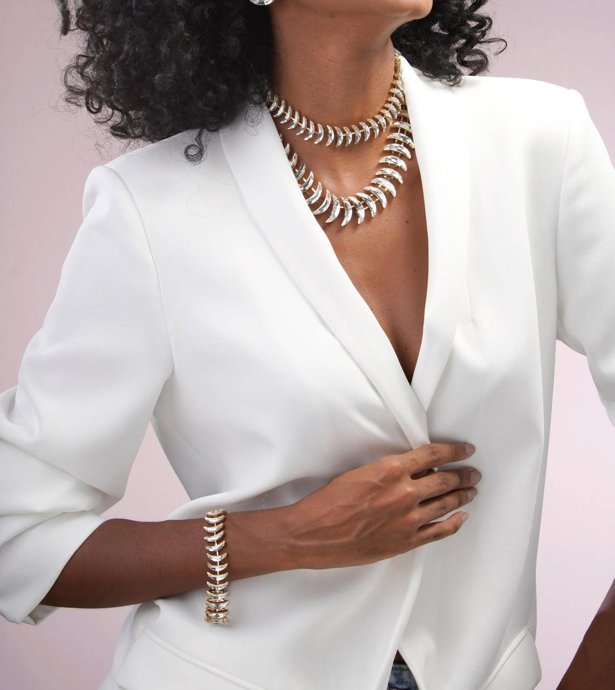 Cristina Sabatini is a jewelry and accessories brand founded by Brazilian designer Cristina Sabatini, known for her bold, vibrant, and elegant designs. Her creations are inspired by her global travels and cultural experiences, incorporating elements from various art styles and architecture. Utilizing materials such as gem-grade resin, precious and semi-precious stones, sterling silver, and 18k gold vermeil, her pieces are designed to make a statement. In 2021, the brand expanded into apparel, reflecting Cristina's dynamic vision.