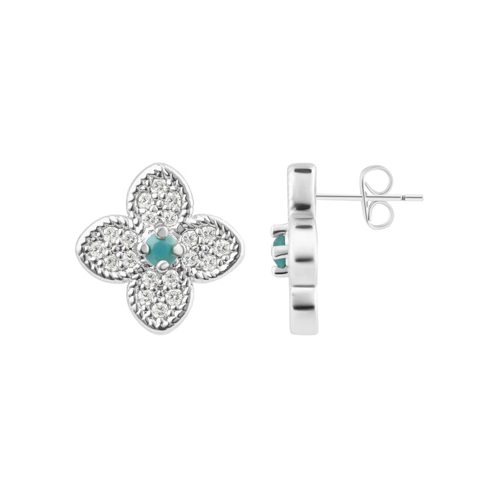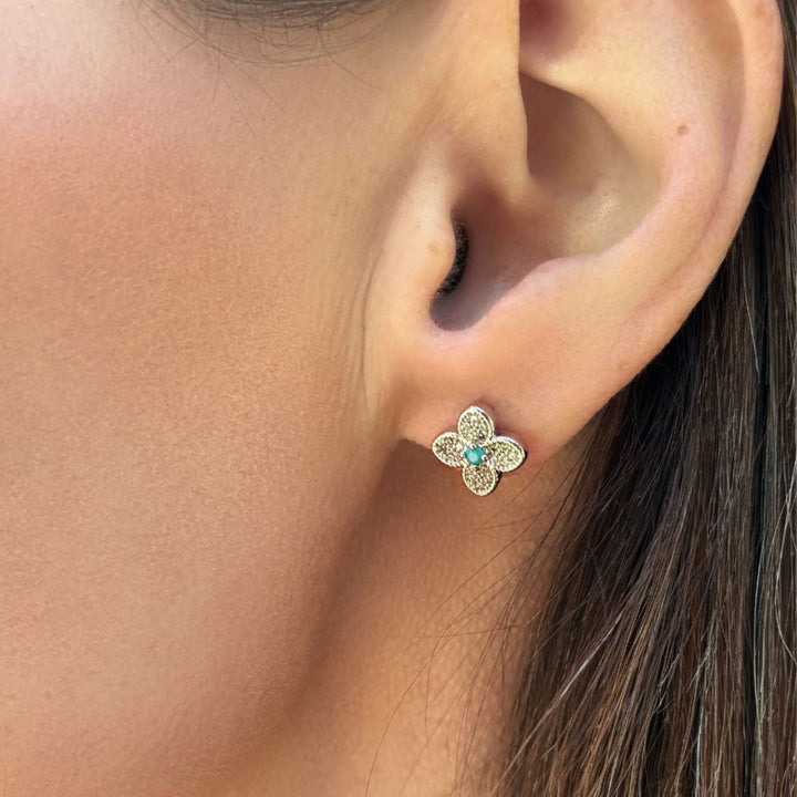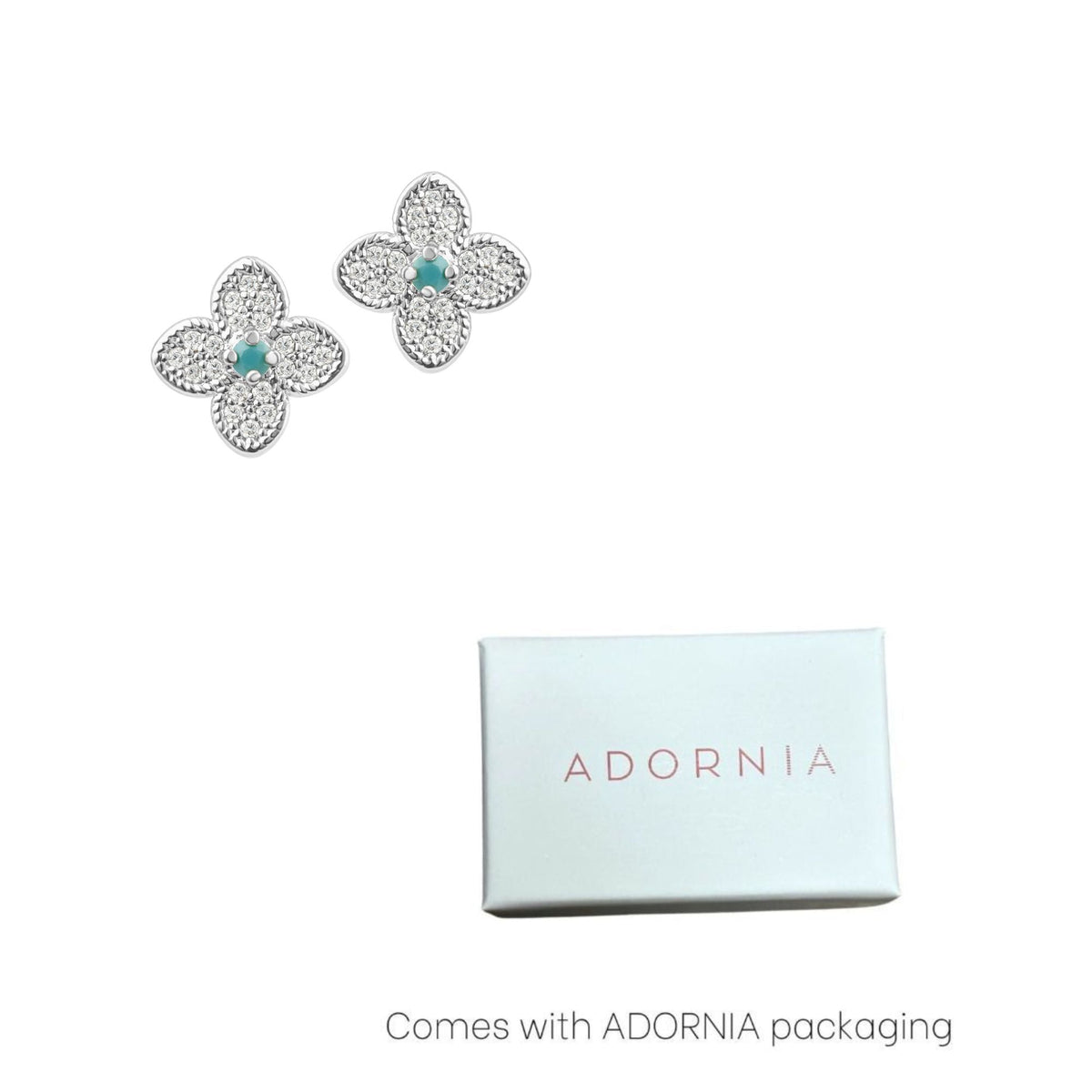 These Silver Plated Turquoise Flower Earrings by Adornia: These charming flower stud earrings are crafted from sterling silver-plated brass and feature a small turquoise gemstone in the center of each flower. At 10mm in diameter, the design is subtle yet eye-catching, making them perfect for everyday wear. These earrings offer a refined elegance, suitable for adding a touch of color to any outfit.