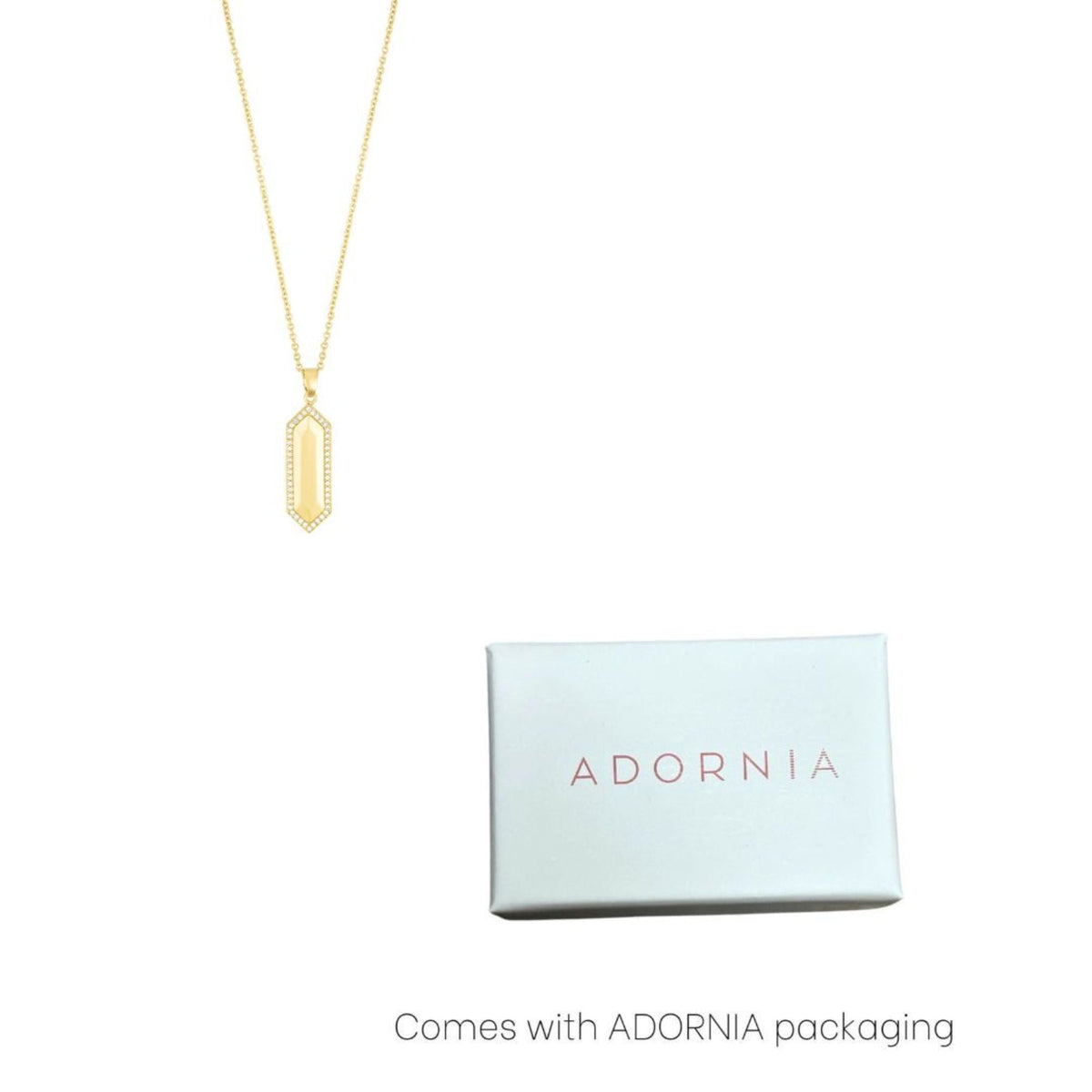 This 14K Gold Plated Elongated Pave Hexagon Necklace by Adornia combines timeless design with a trendy twist. The elongated hexagon pendant is adorned with sparkling CZ gems, creating a sophisticated and luxurious accessory for any wardrobe. Its adjustable length offers customizable wear.