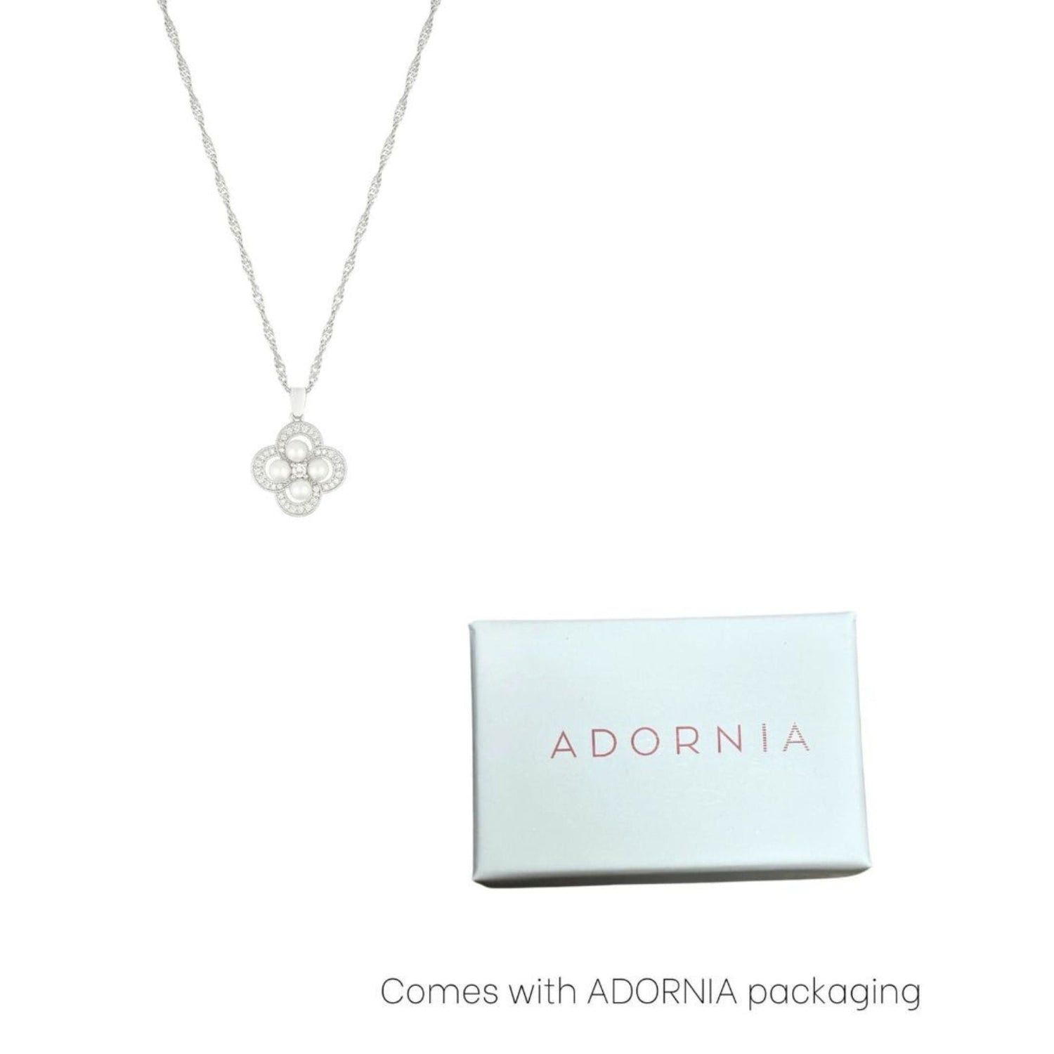 This Silver Plated Pearl-Studded Clover Necklace by Adornia adds a touch of sophistication with its sterling silver-plated brass construction. Featuring faux pearls and a charming clover design, this necklace offers versatility and luxury in one piece.