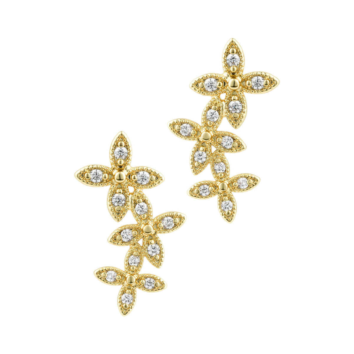 14K gold-plated brass, CZ gems. Length: 12mm, width: 7mm.