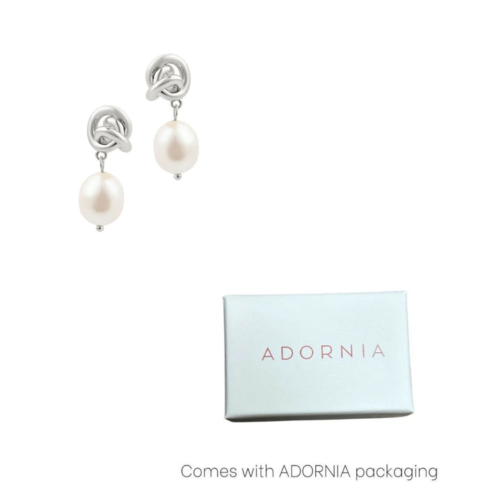 These Silver Plated Freshwater Pearl Knot Earrings by Adornia combine timeless design with modern luxury. The sterling silver-plated brass setting is accented with a classic knot design and a beautiful freshwater pearl drop. These elegant earrings are perfect for adding a refined touch to both casual and formal outfits, offering a classic style that will never go out of fashion.