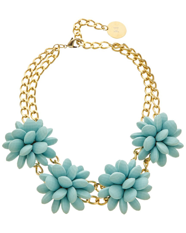 This Carolina Herrera Resin Flower Necklace is a unique blend of elegance and modernity. The necklace features a beautifully crafted resin flower, perfect for adding a pop of style to any outfit. The combination of metal and plastic materials offers a chic yet durable design.
