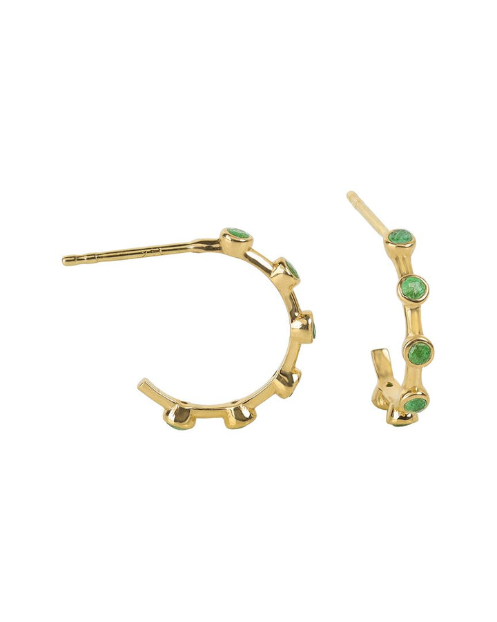 These Tiramisu Gemstone Gala 14K Gemstone Hoops from the renowned brand Tiramisu feature vibrant Zambian Emeralds set in 14kt yellow gold. With a drop of 0.59 inches, these hoops are perfect for adding a splash of color and elegance to your look.