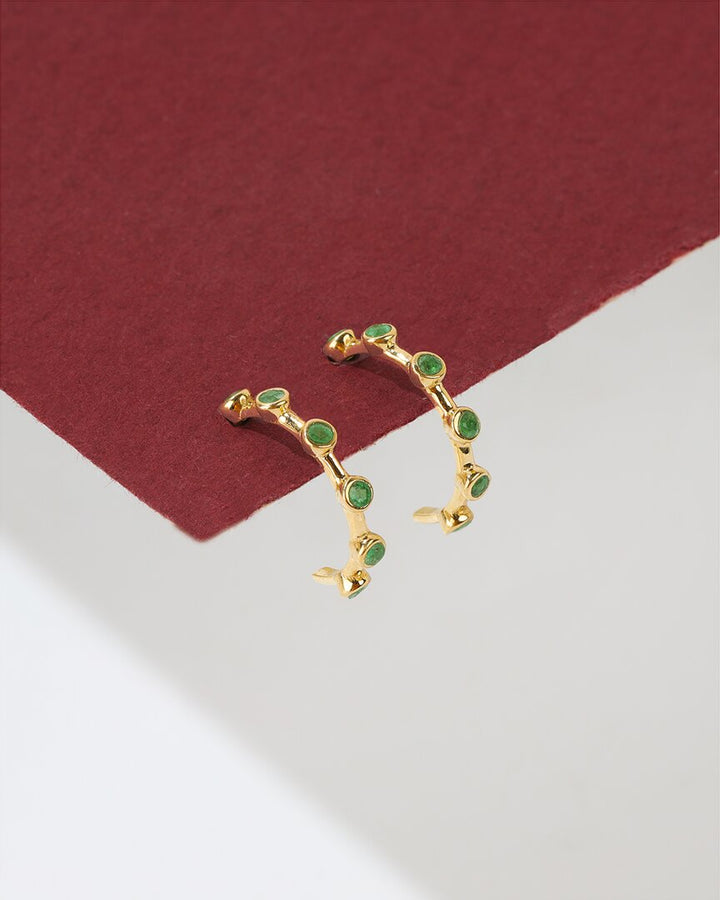 Made from 14K yellow gold with Zambian emerald gemstones (0.36 ct. total weight). Post backs for secure wear. Special care may be required due to gemstone treatment.