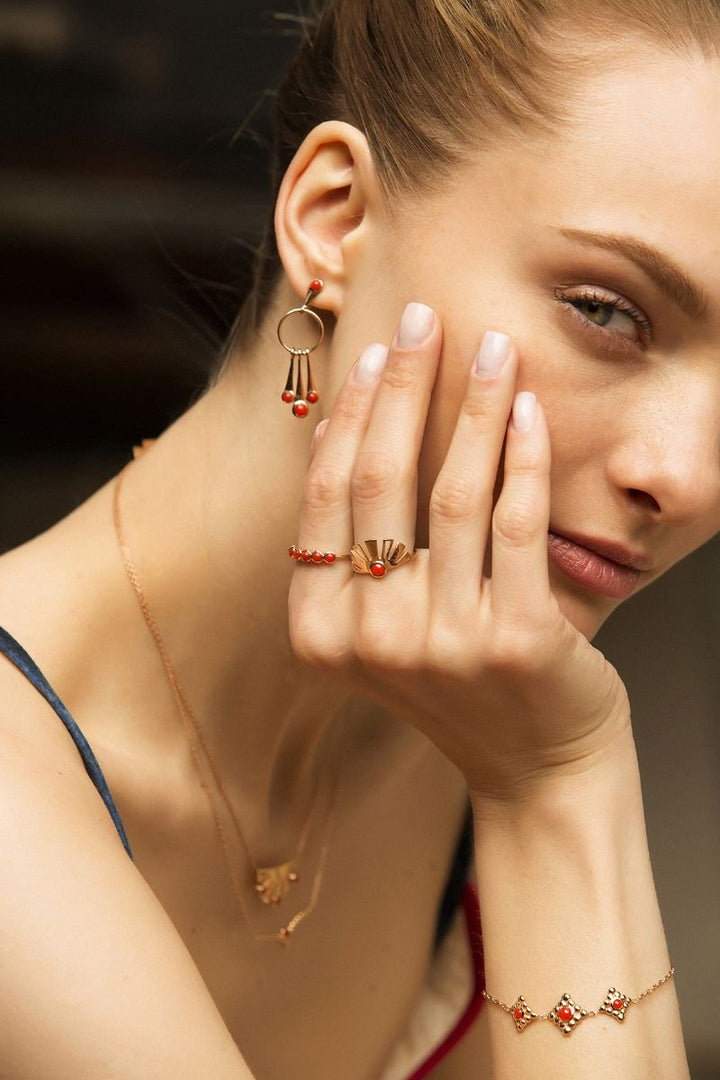 Inspired by the sunset and the most beautiful hours of the day for some of us, this collection features 14k pink gold and coral stones bringing out the colors of the sunset.