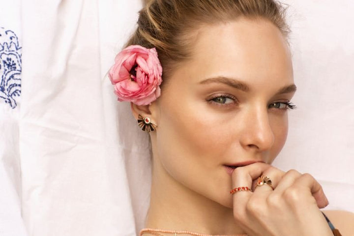 Inspired by the sunset and the most beautiful hours of the day for some of us, this collection features 14k pink gold and coral stones bringing out the colors of the sunset.