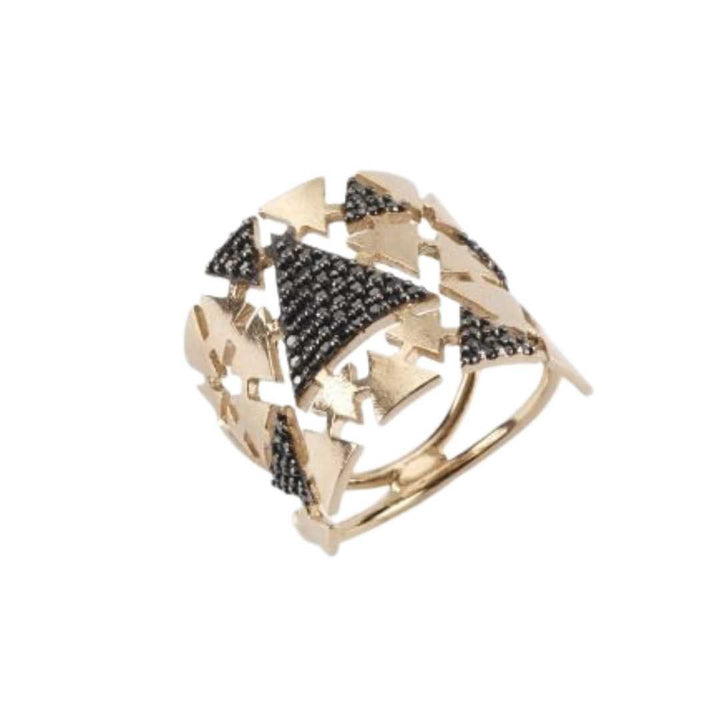 The Triangle Collection becomes both classic and original, using various sized triangle shapes with modern lines, adorned with diamonds. This statement ring reflects authenticity.