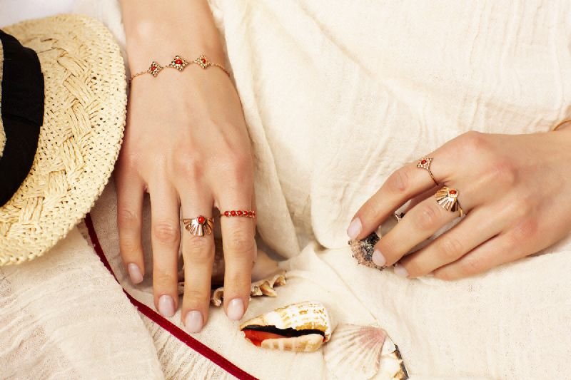 Inspired by the sunset and the most beautiful hours of the day for some of us, this collection features 14k pink gold and coral stones bringing out the colors of the sunset.