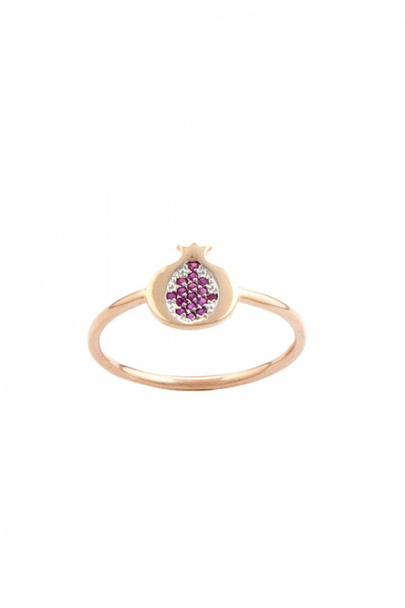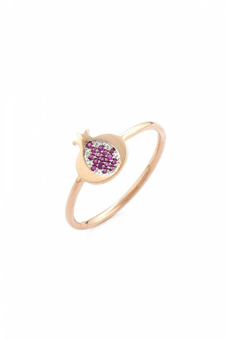 Renowned and valued in Anatolian culture for centuries, the pomegranate is a symbol of abundance and sharing, and also a source of inspiration for many artists and designers with its beautiful and colorful appearance. Here, the pomegranate figure is designed in three dimensions, and prepared with 14k rose gold and rubies. Instead of being empty on the back that touches the skin, wearers can feel good knowing there are mini-pomegranates which are only within their knowledge.