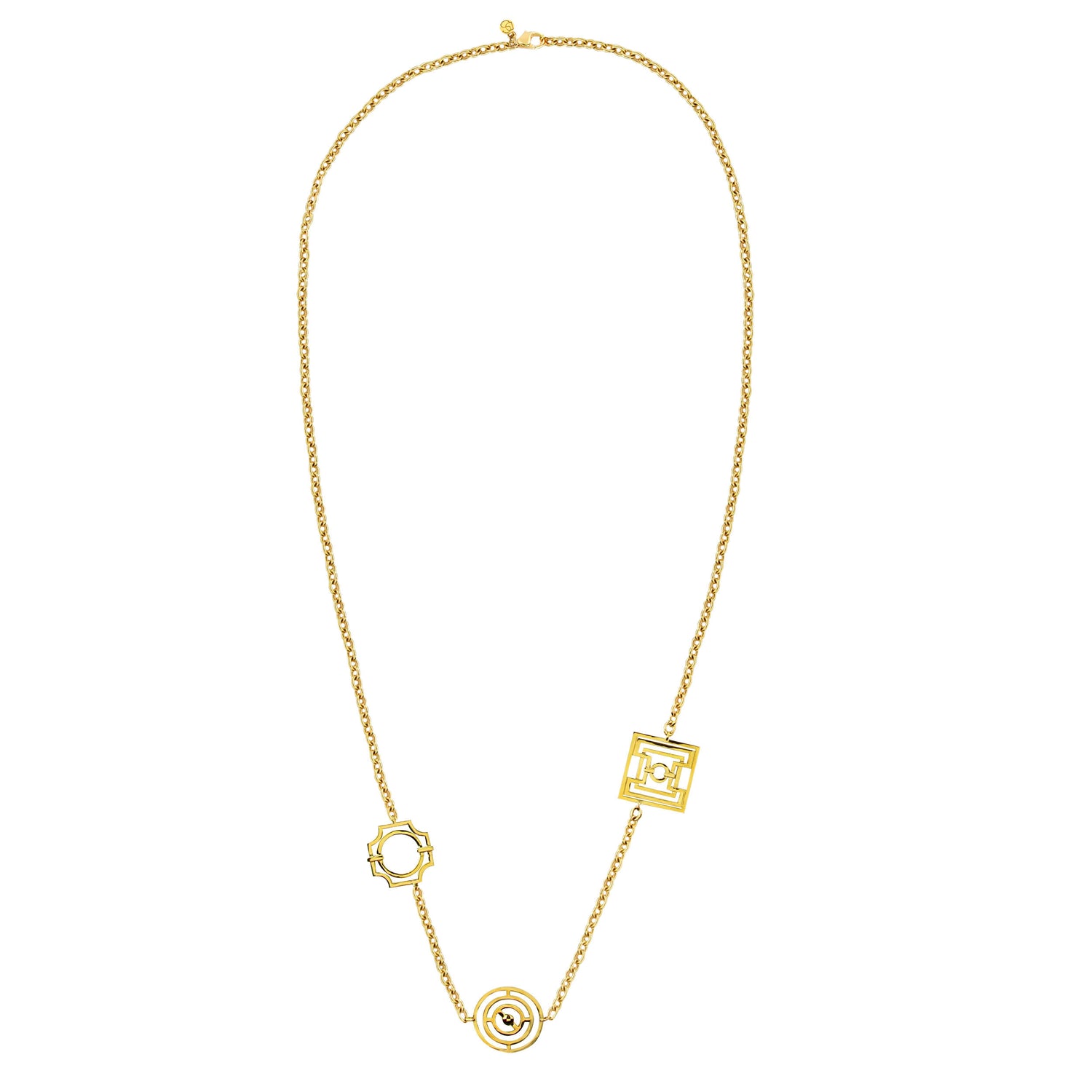 18k gold-plated brass and silver.Dimensions: Length: 34 inches.