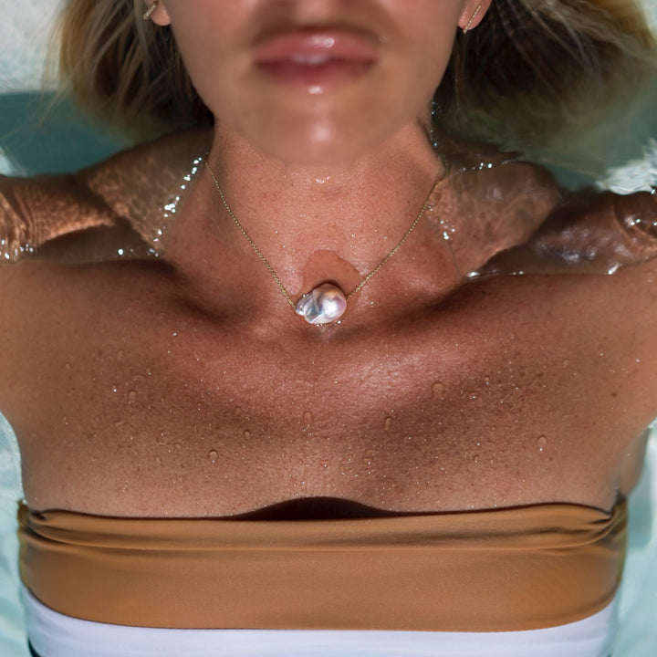The Just a Pearl capsule collection offers a paired down, sophisticated design. Each piece is made of a lightweight, fine yellow gold chain with one baroque pearl in order to highlight its elegant, iridescent beauty. Each piece in the collection is unique due to the nature of baroque pearls.
