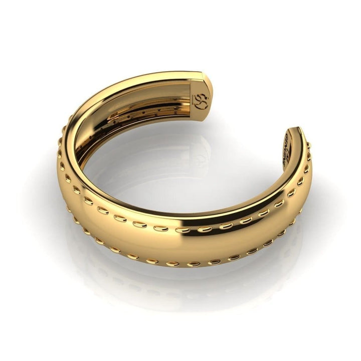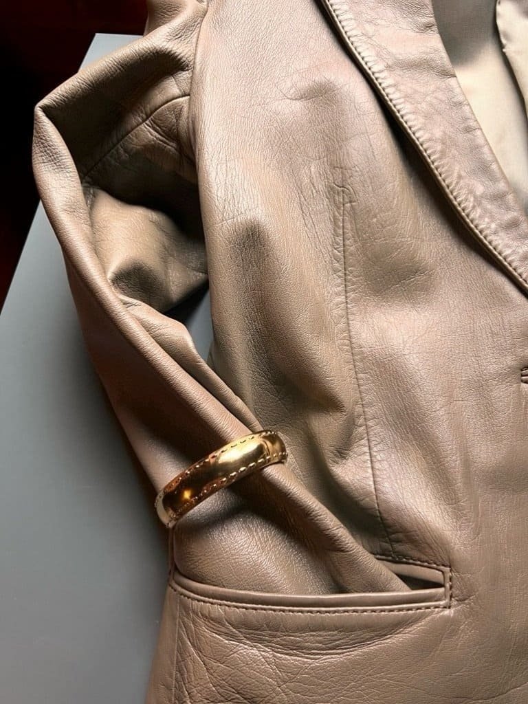 We all live with scars. Some are hidden, some are more visible. But they are part of us, they make us wiser, stronger, and more appreciative. They make us genuine. They should not be hidden, they all deserve to be celebrated. The stitches represent healing, strength, and appreciation. The Cuff is part of the I'm Genuine collection, the new jewelry line of Dorka S. Jewelry, that plays with details seen on genuine leather products.