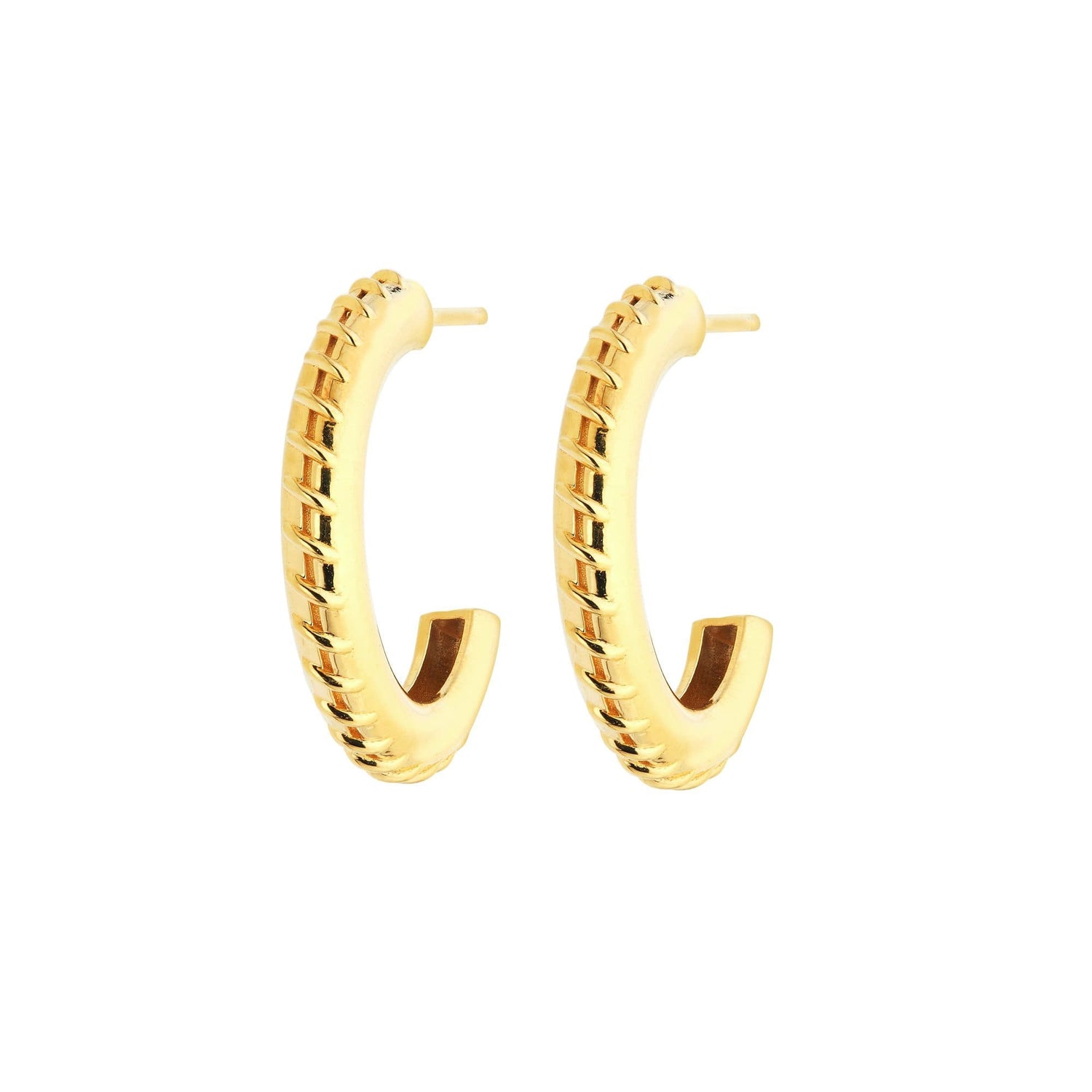 The Cord hoops resemble the round stitched leather cords. The stitches are symbolical, represent healing, strength and appreciation. We all live with scars, some are visible, some are invisible. But they should not be hidden, they all deserve to be celebrated. The Gold Cord Hoops are part of the I'm Genuine collection.