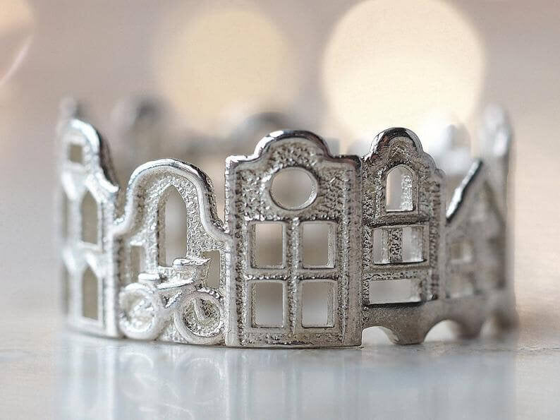 The Amsterdam Cityscape Ring is highly detailed and features the city's iconic little canal houses to transfer its joy. You will even find a tiny bicycle!