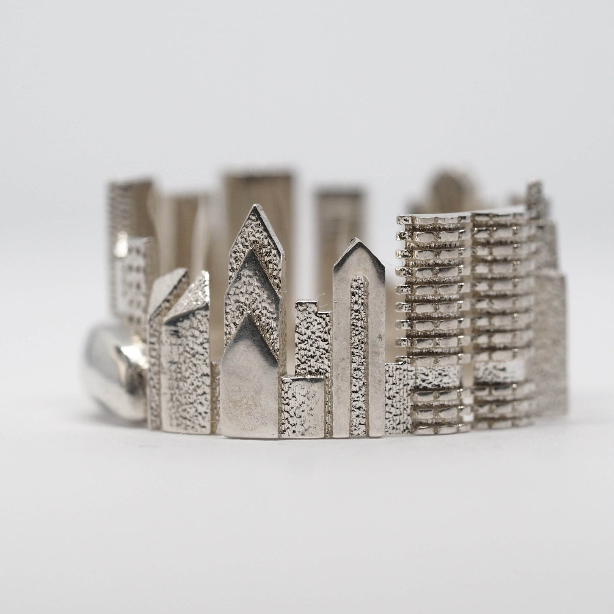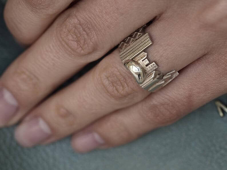 Inspired by living in multiple cities and countries, California-based designer Ola Shekhtman creates unique cityscape rings. Her sculptural creations reflect iconic architectural landmarks from beloved cities worldwide. Everyone has places that are special to them and hold a lot of significance. Available in sterling silver, gold or platinum, Ola's rings allow you to carry your favorite places with you always and be reminded of precious moments and memories at a glance.