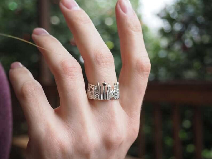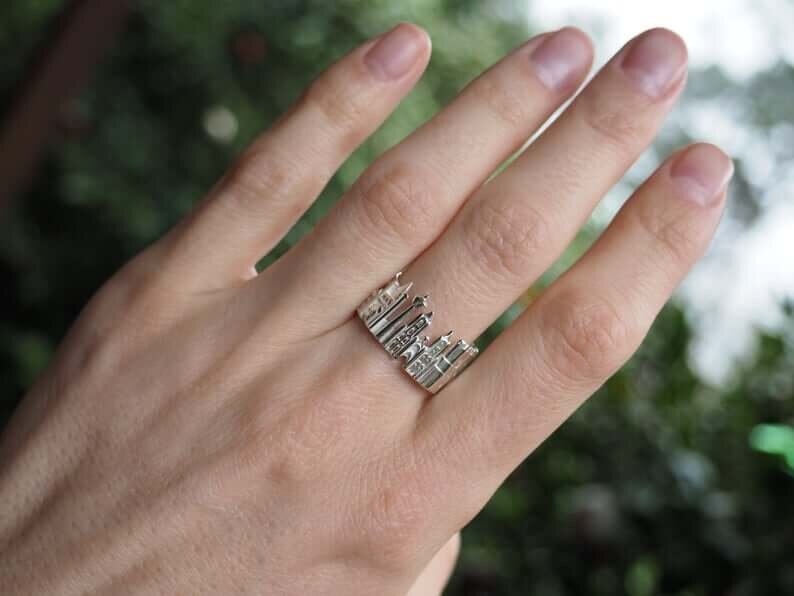 Inspired by living in multiple cities and countries, California-based designer Ola Shekhtman creates unique cityscape rings. Her sculptural creations reflect iconic architectural landmarks from beloved cities worldwide. Everyone has places that are special to them and hold a lot of significance. Available in sterling silver, gold or platinum, Ola's rings allow you to carry your favorite places with you always and be reminded of precious moments and memories at a glance.