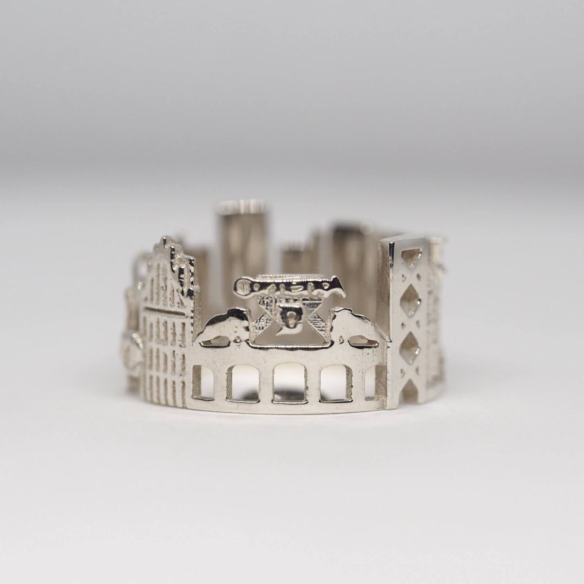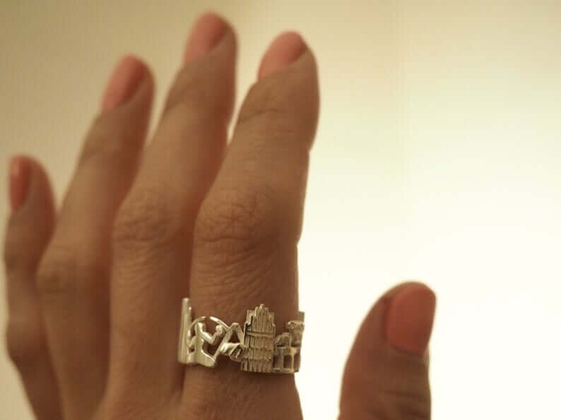 Inspired by living in multiple cities and countries, California-based designer Ola Shekhtman creates unique cityscape rings. Her sculptural creations reflect iconic architectural landmarks from beloved cities worldwide. Everyone has places that are special to them and hold a lot of significance. Available in sterling silver, gold or platinum, Ola's rings allow you to carry your favorite places with you always and be reminded of precious moments and memories at a glance.