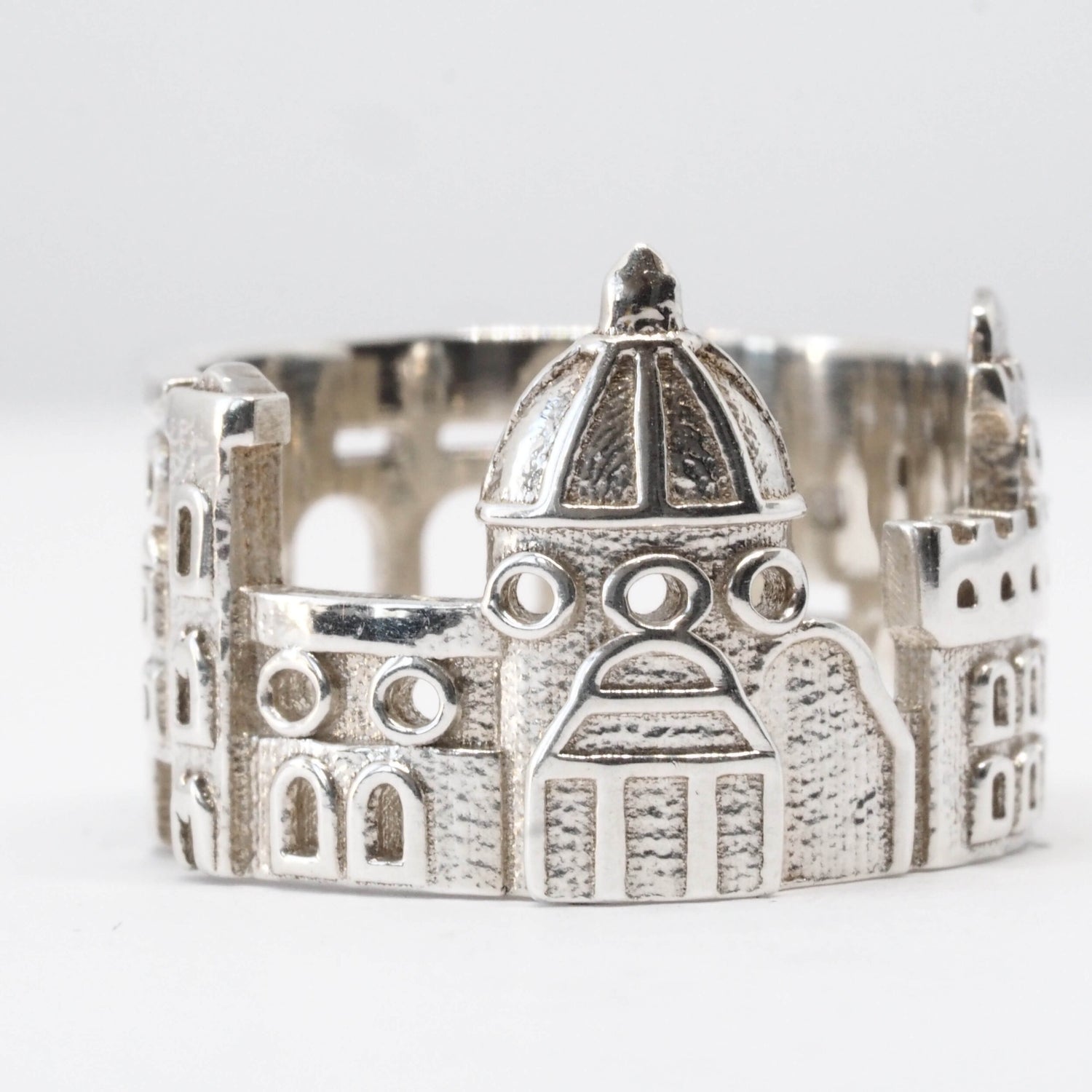 The Florence Cityscape Ring is highly detailed and features Florence Cityscape Ring is highly detailed and features Ponte Vecchio, Florence Cathedral di Santa Maria del Flore and Palazzo Vecchio.