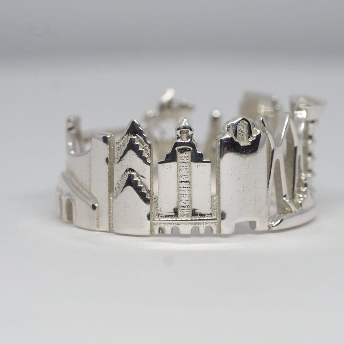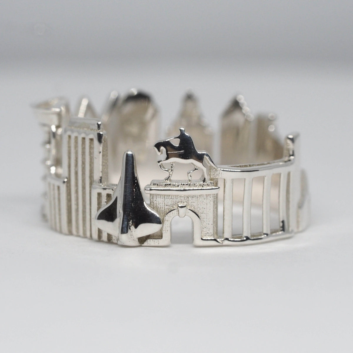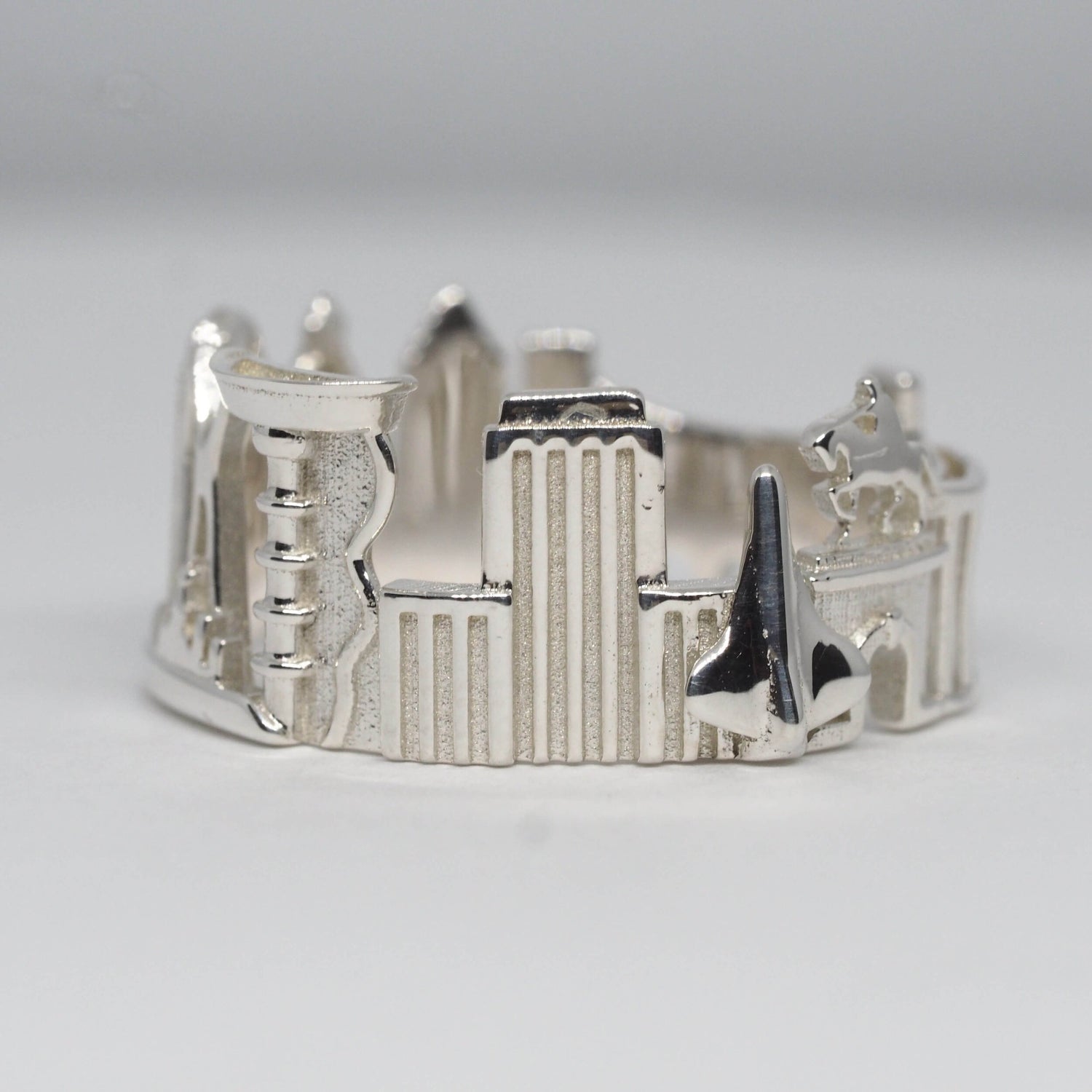 Inspired by living in multiple cities and countries, California-based designer Ola Shekhtman creates unique cityscape rings. Her sculptural creations reflect iconic architectural landmarks from beloved cities worldwide. Everyone has places that are special to them and hold a lot of significance. Available in sterling silver, gold or platinum, Ola's rings allow you to carry your favorite places with you always and be reminded of precious moments and memories at a glance.