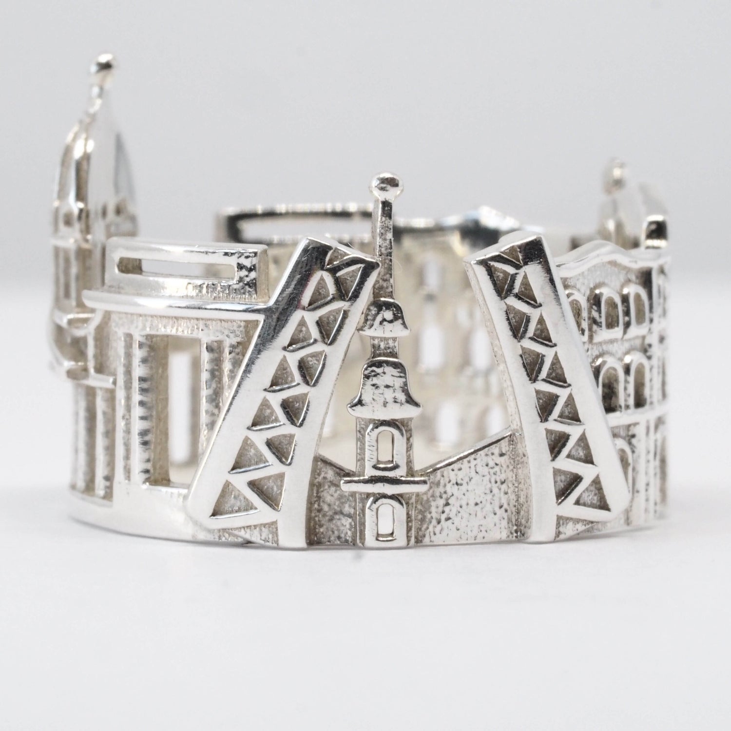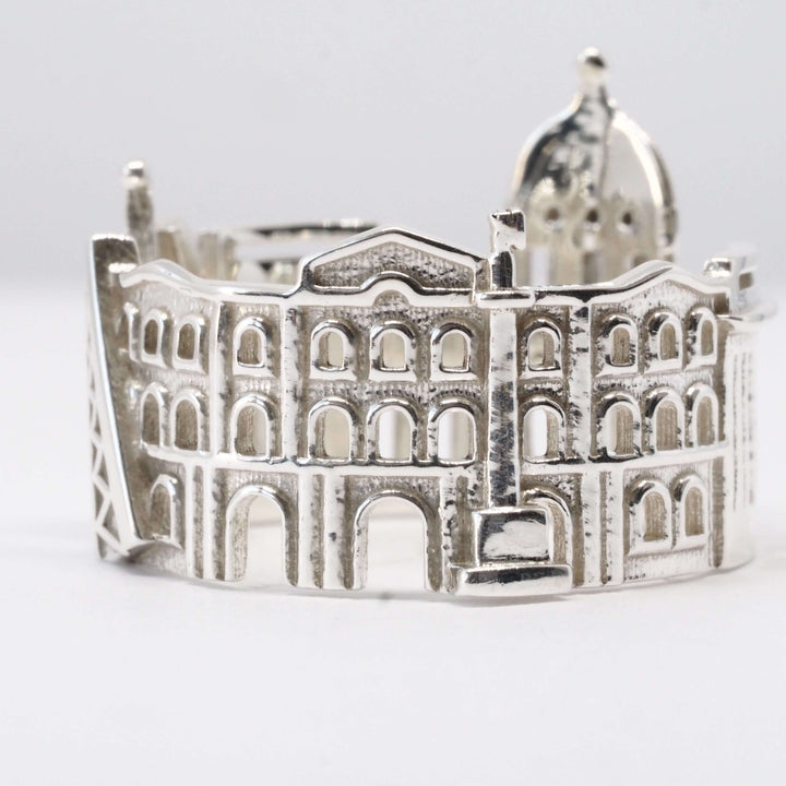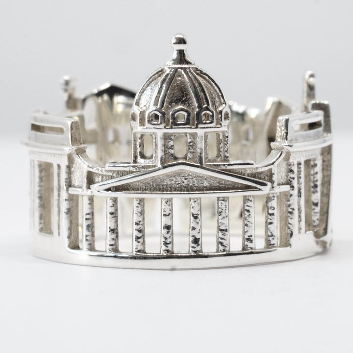 The St Petersburg Cityscape Ring is highly detailed and features Kazansky Cathedral, Winter Palace, Peter and Paul Fortress and iconic Drawbridges.
