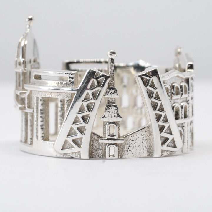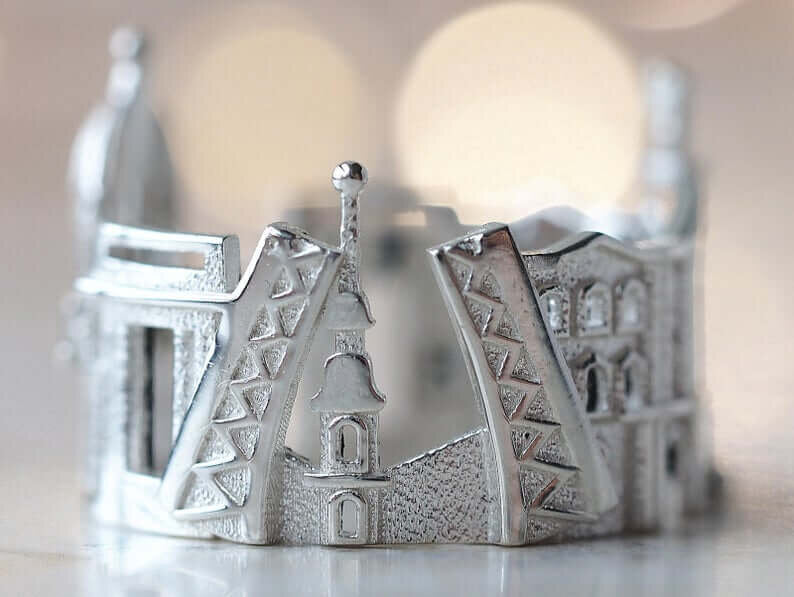 Inspired by living in multiple cities and countries, California-based designer Ola Shekhtman creates unique cityscape rings. Her sculptural creations reflect iconic architectural landmarks from beloved cities worldwide. Everyone has places that are special to them and hold a lot of significance. Available in sterling silver, gold or platinum, Ola's rings allow you to carry your favorite places with you always and be reminded of precious moments and memories at a glance.