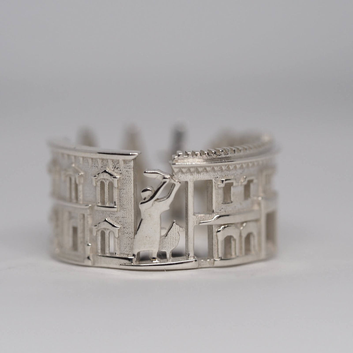 Inspired by living in multiple cities and countries, California-based designer Ola Shekhtman creates unique cityscape rings. Her sculptural creations reflect iconic architectural landmarks from beloved cities worldwide. Everyone has places that are special to them and hold a lot of significance. Available in sterling silver, gold or platinum, Ola's rings allow you to carry your favorite places with you always and be reminded of precious moments and memories at a glance.