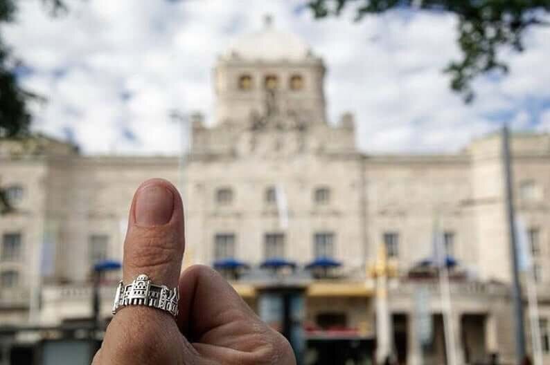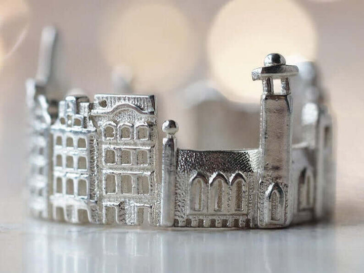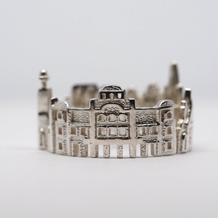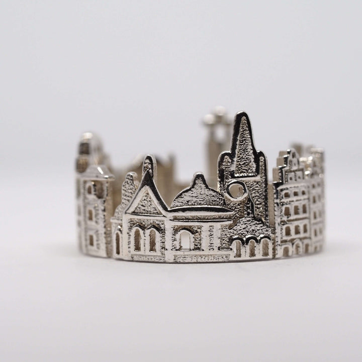 The Stockholm Cityscape Ring is is highly detailed and features City Hall, Stortorget in Gamla Stan, Riddarholmen Church and in larger sizes, Royal Dramatic Theater as well.