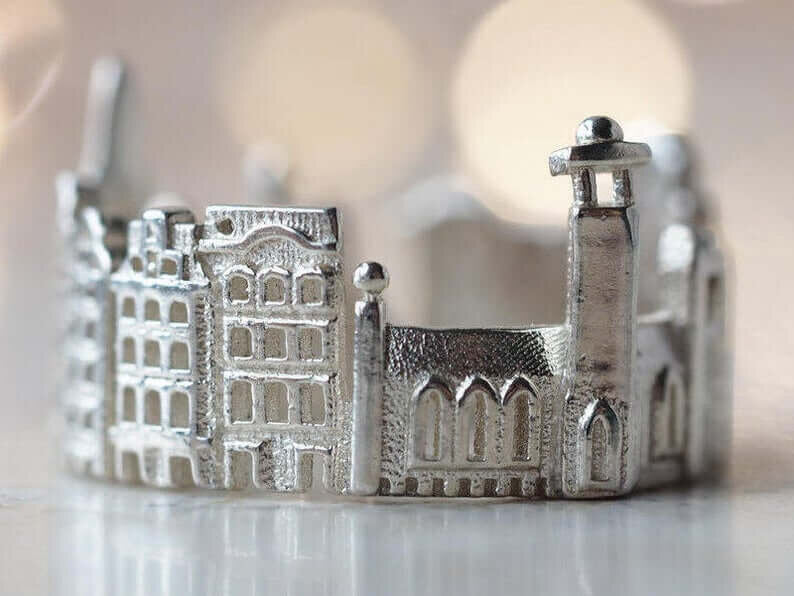 Inspired by living in multiple cities and countries, California-based designer Ola Shekhtman creates unique cityscape rings. Her sculptural creations reflect iconic architectural landmarks from beloved cities worldwide. Everyone has places that are special to them and hold a lot of significance. Available in sterling silver, gold or platinum, Ola's rings allow you to carry your favorite places with you always and be reminded of precious moments and memories at a glance.