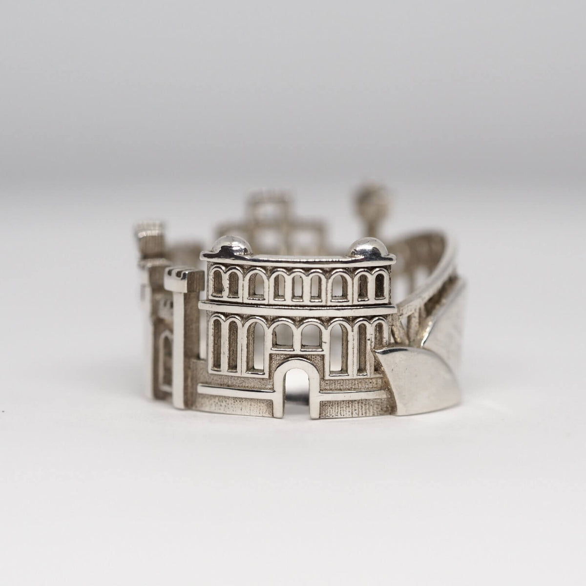 Inspired by living in multiple cities and countries, California-based designer Ola Shekhtman creates unique cityscape rings. Her sculptural creations reflect iconic architectural landmarks from beloved cities worldwide. Everyone has places that are special to them and hold a lot of significance. Available in sterling silver, gold or platinum, Ola's rings allow you to carry your favorite places with you always and be reminded of precious moments and memories at a glance.