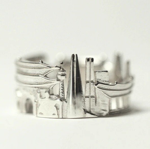 Inspired by living in multiple cities and countries, California-based designer Ola Shekhtman creates unique cityscape rings. Her sculptural creations reflect iconic architectural landmarks from beloved cities worldwide. Everyone has places that are special to them and hold a lot of significance. Available in sterling silver, gold or platinum, Ola's rings allow you to carry your favorite places with you always and be reminded of precious moments and memories at a glance.