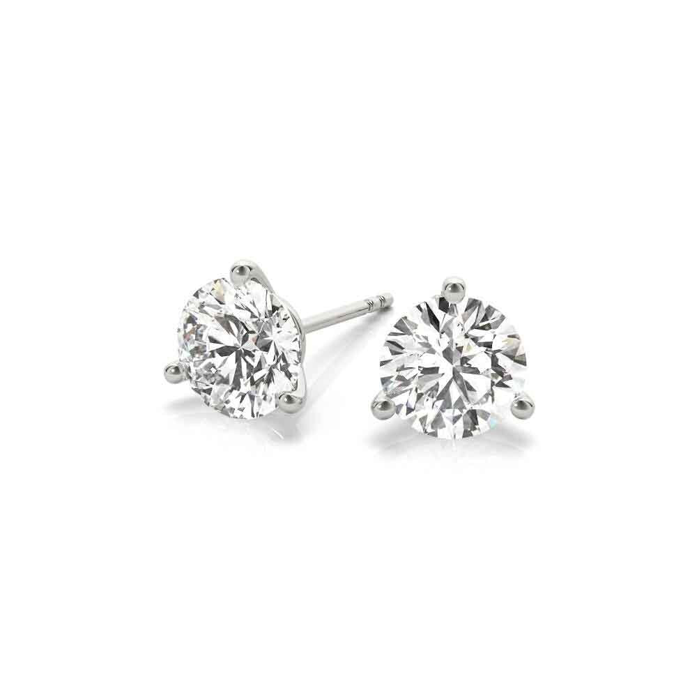 Gorgeous three prong 14k gold settings in your choice of yellow gold or white gold, often referred to as martini settings because of their resemblance to a martini glass. Lab-grown diamonds with your size of diamond with push back for a secure closure.