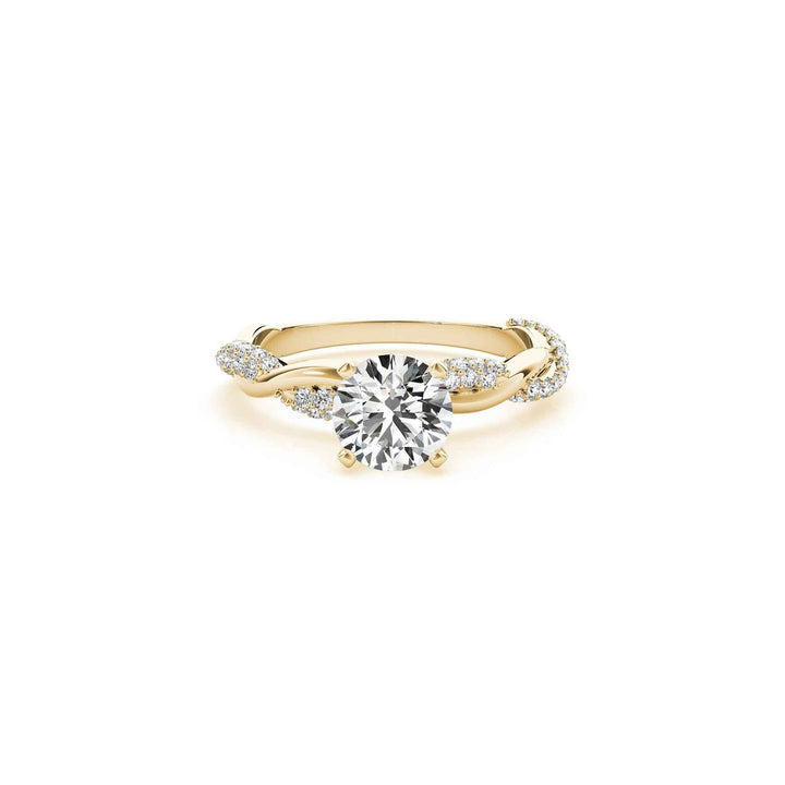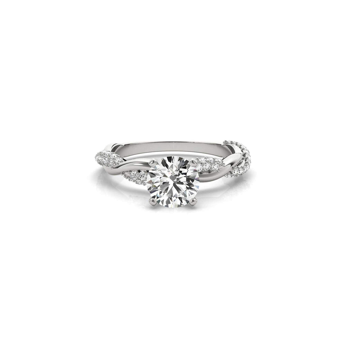 A diamond engagement ring with beautiful twist metal accented by a sparkly double row twist of diamonds shows off your beautiful center diamond. Available in your choice of lab-grown diamond center or natural mined diamond center, the setting is offered in lab-grown diamonds set in 10k gold or 14k gold in yellow gold, rose gold, or white gold, or platinum.