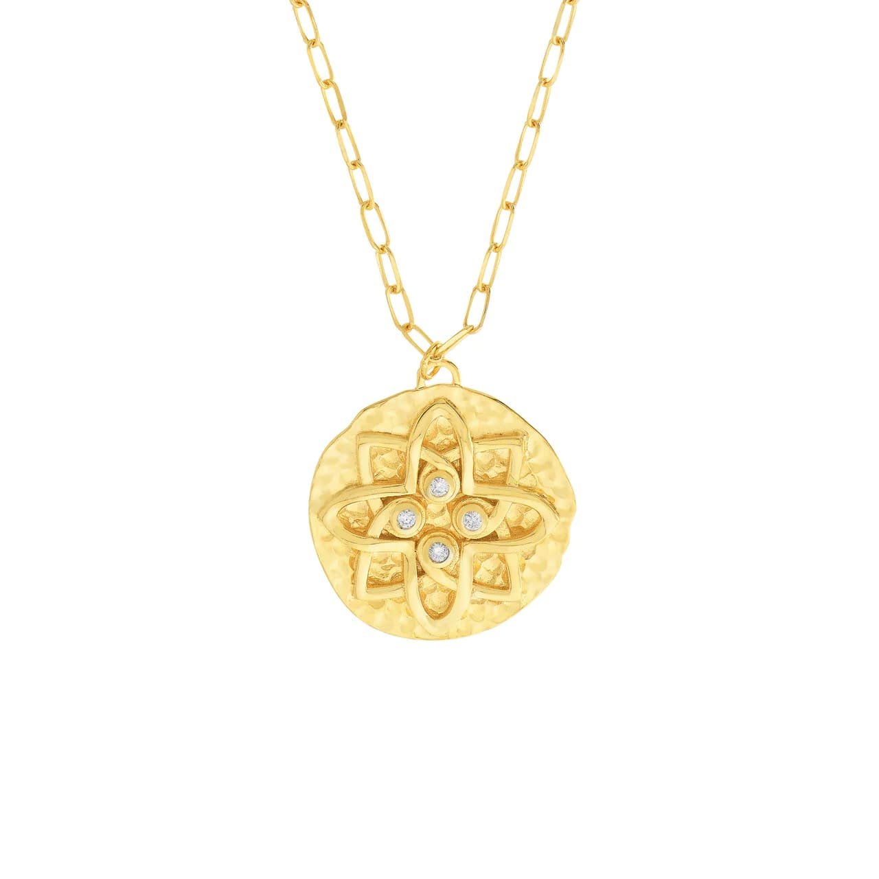 Hammered Floral Medallion Diamond Necklace