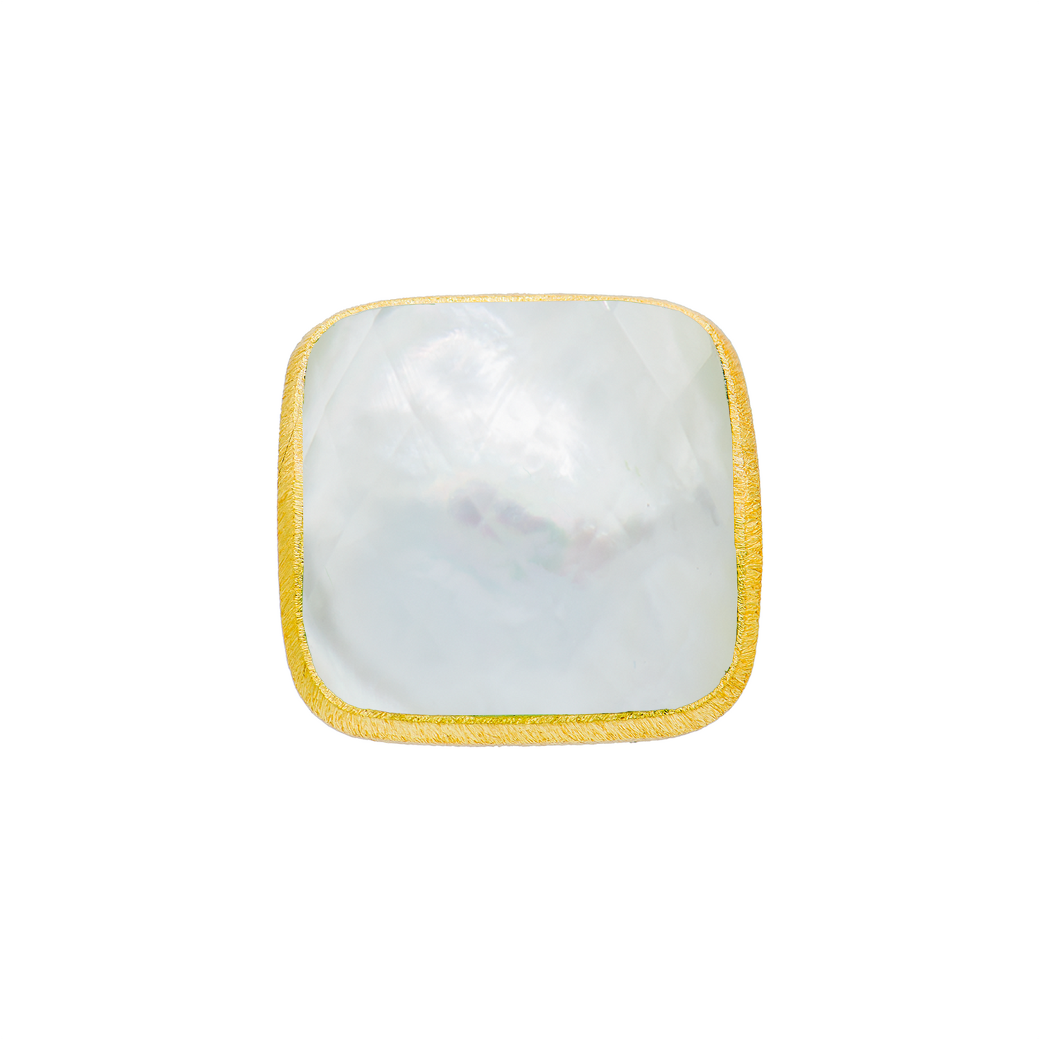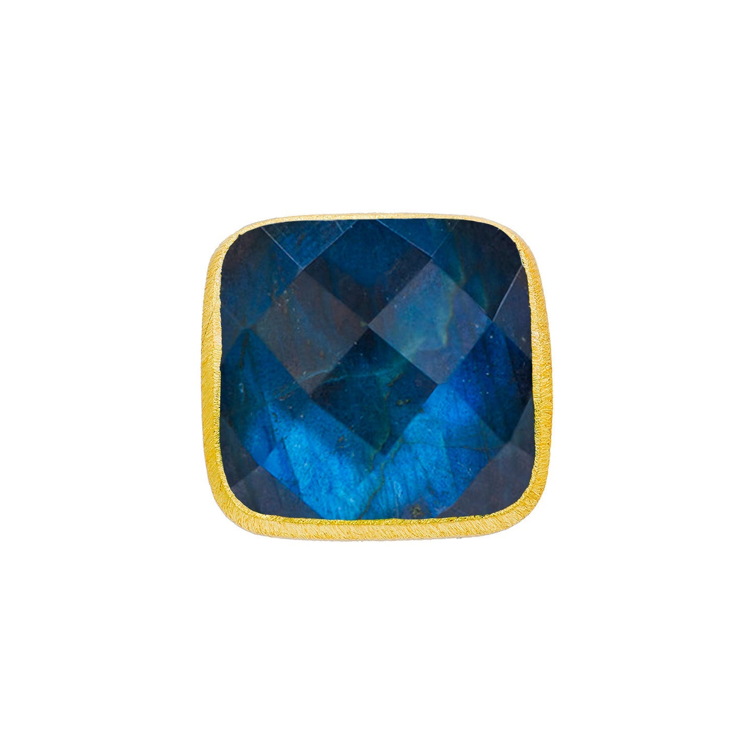 Handcrafted in 18k gold plating with a square stone setting, measuring 1 inch wide.
