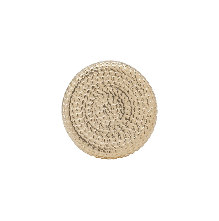 The Kinea Statement Round Ring by Marcia Moran is an 18k gold-plated ring with a textured round design. This statement piece combines boldness with elegance, making it a versatile accessory that stands out. Handmade in Brazil, it showcases exceptional craftsmanship and attention to detail.