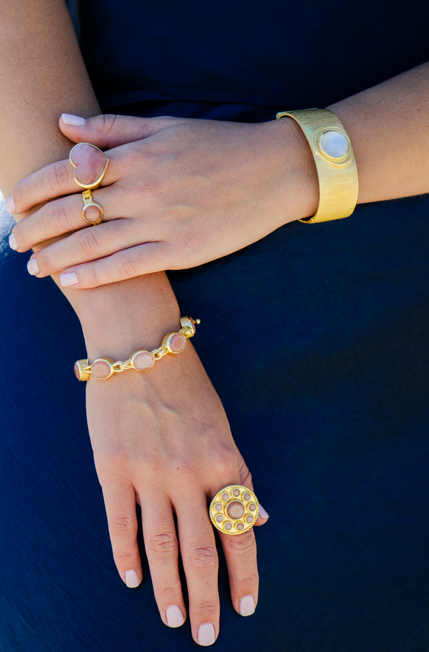 Los Angeles-based designer Marcia Moran's jewelry line is rooted in her Brazilian heritage fused with Californian lifestyle. With her eye-catching, contemporary designs, Marcia's goal is to make the women who wear them feel powerful and beautiful. Her semi-precious stone and precious plated jewelry continues to stand out for its balance of timeless elegance and playful fashion. You will often see celebrities wearing her pieces at special events like red carpets, photoshoots and interviews.