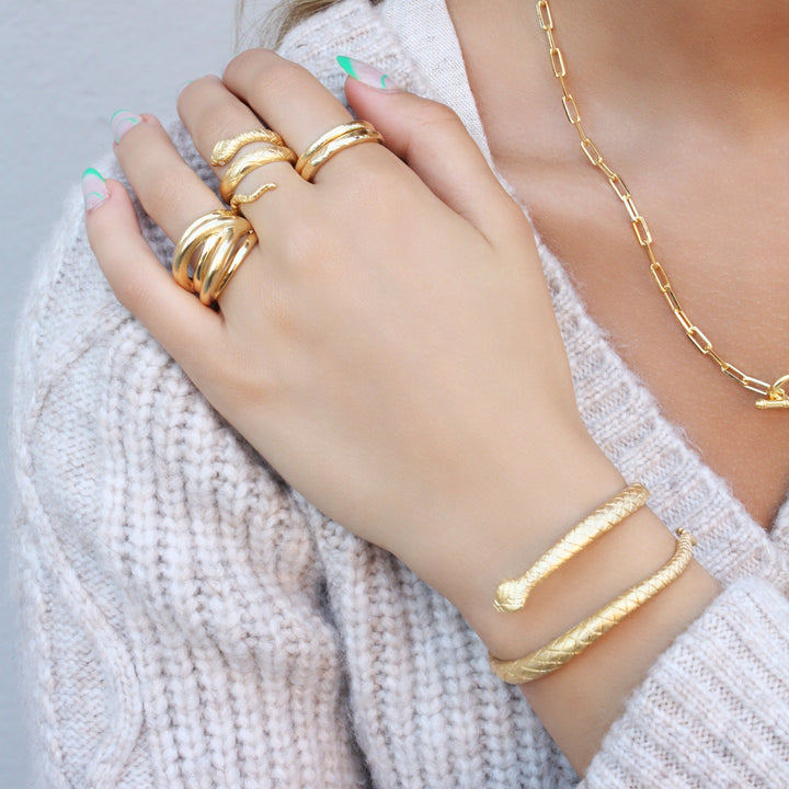 Handcrafted in 18k gold plating with a wrap snake detail.