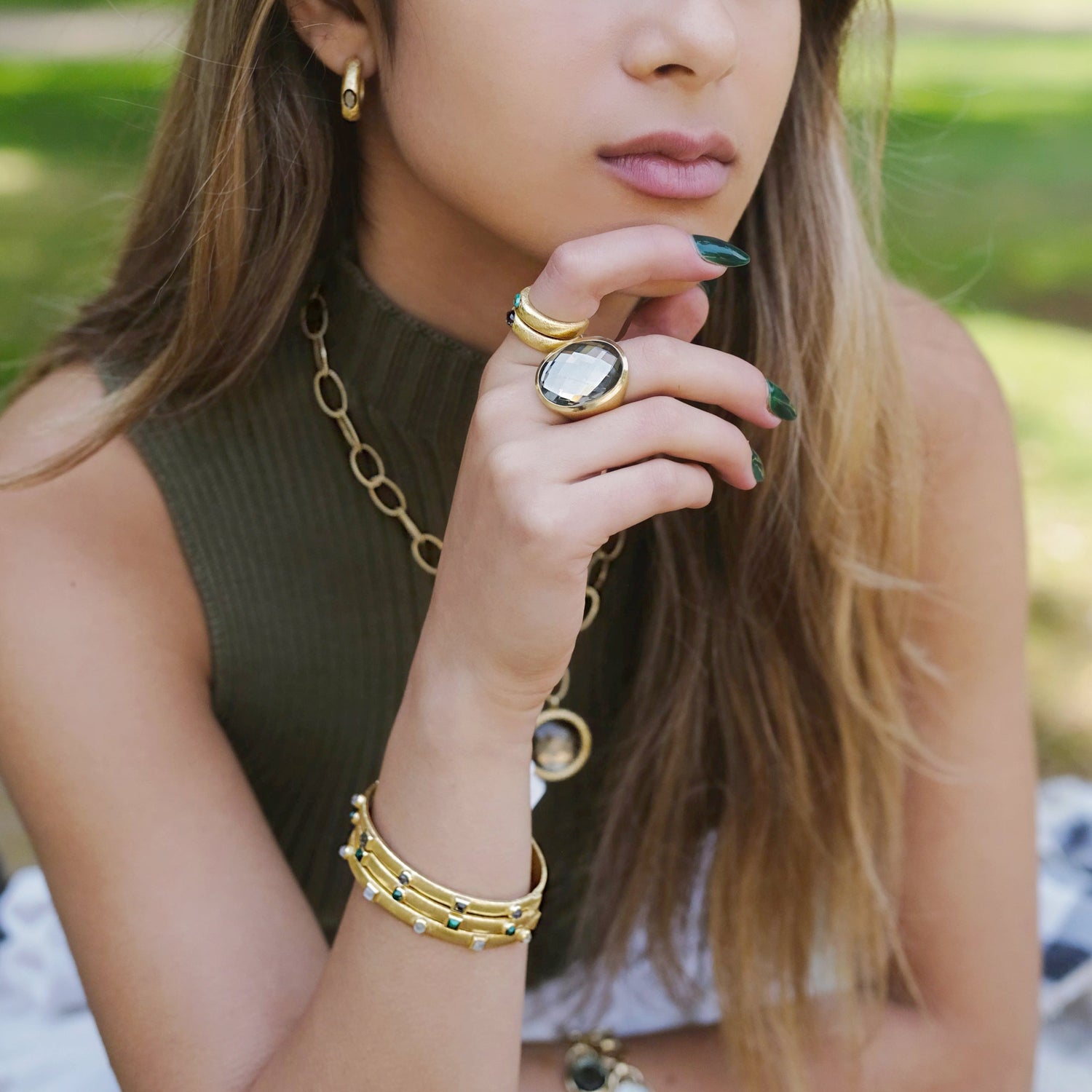 Los Angeles-based designer Marcia Moran's jewelry line is rooted in her Brazilian heritage fused with Californian lifestyle. With her eye-catching, contemporary designs, Marcia's goal is to make the women who wear them feel powerful and beautiful. Her semi-precious stone and precious plated jewelry continues to stand out for its balance of timeless elegance and playful fashion. You will often see celebrities wearing her pieces at special events like red carpets, photoshoots and interviews.