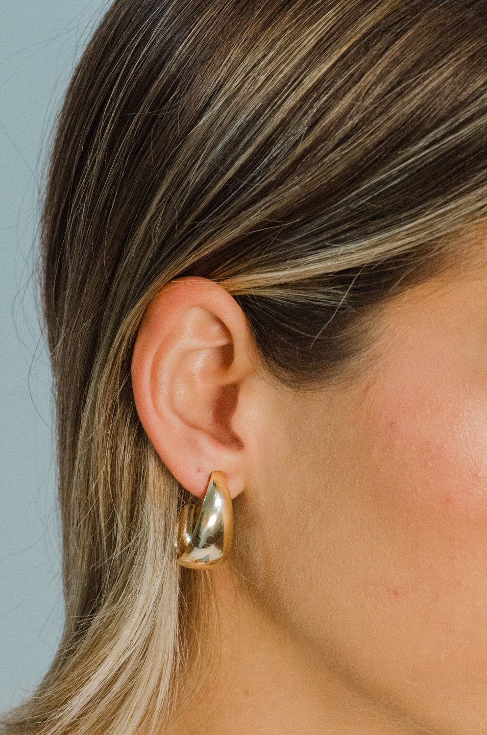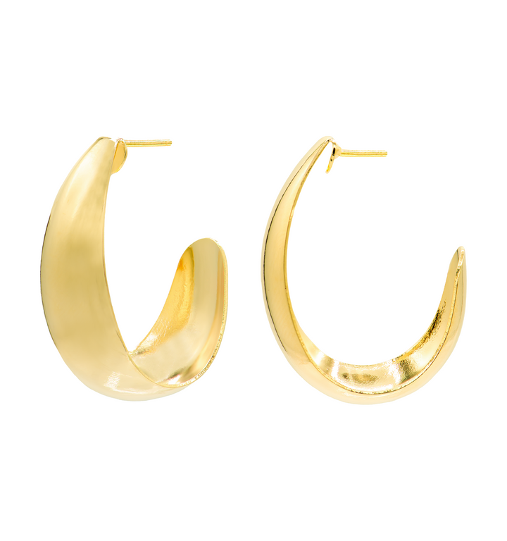 The Marlow Hoops by Marcia Moran are lightweight 18k gold-plated teardrop-shaped hoops. Measuring 1 inch long, these hoops offer a simple yet stylish design, perfect for daily wear. Handmade in Brazil.