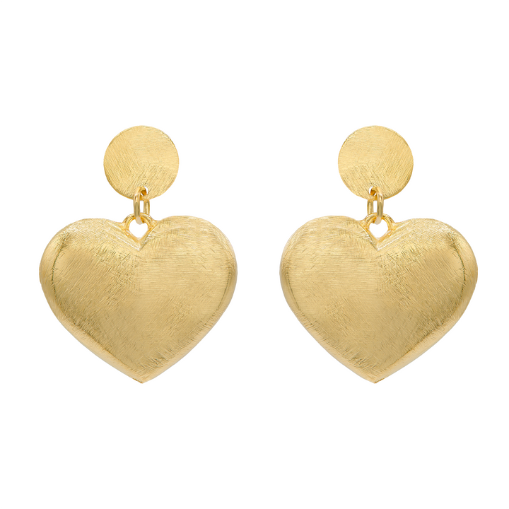 Handcrafted in 18k gold plating with heart details. Measures 1 inch.
