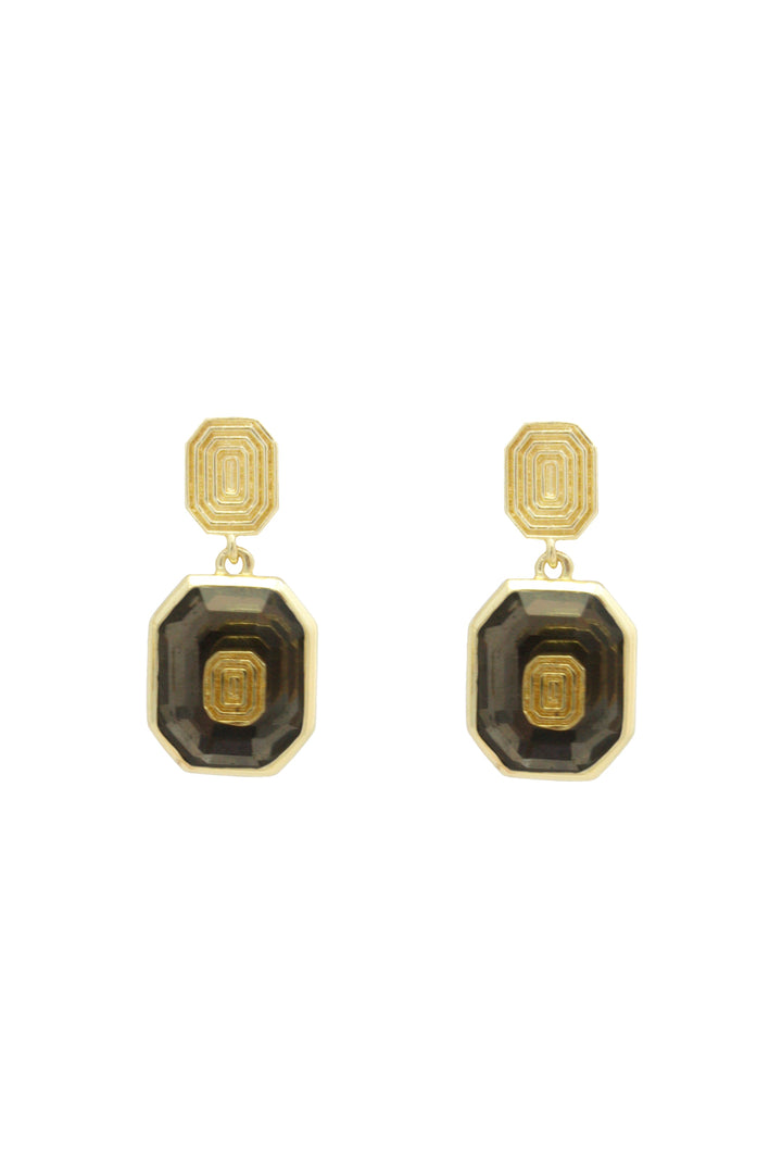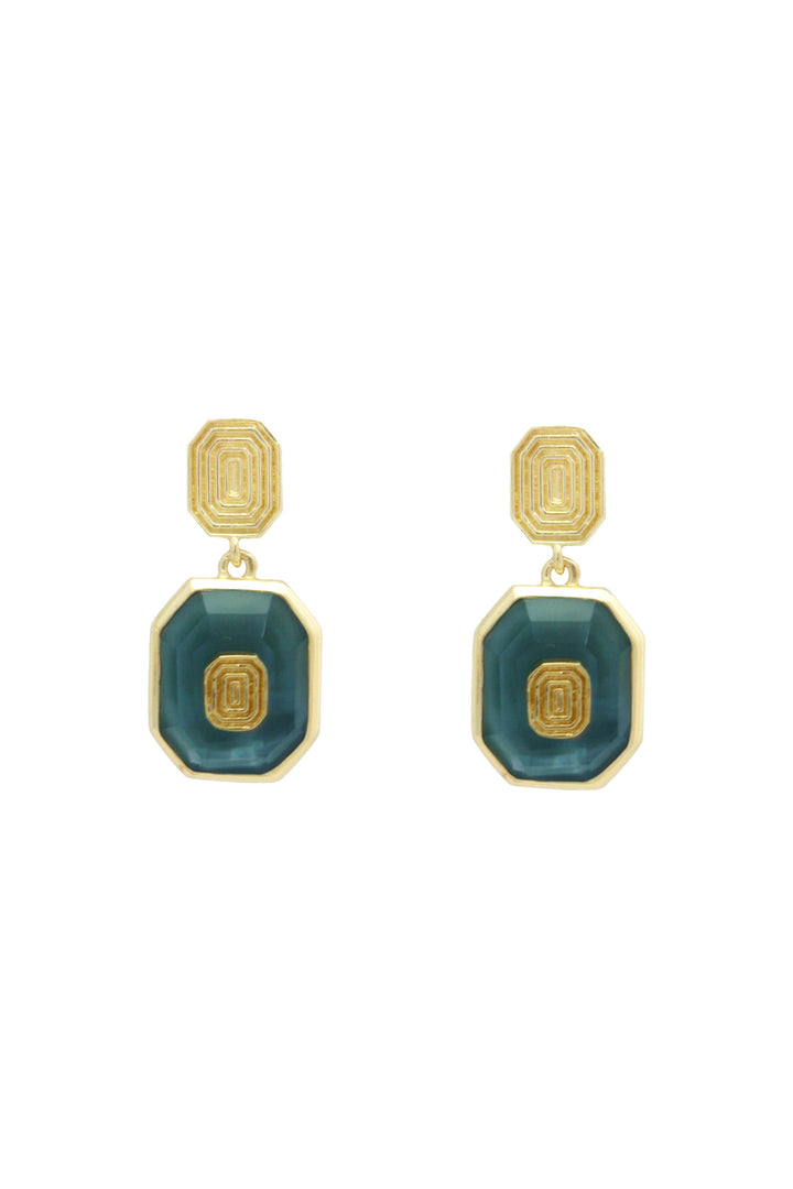 The Reese Gemstone Earrings by Marcia Moran feature 18k gold-plated drop earrings with octagonal coin and gemstone details, offering a refined and stylish look. Handmade in Brazil, these earrings add a touch of elegance to any outfit.