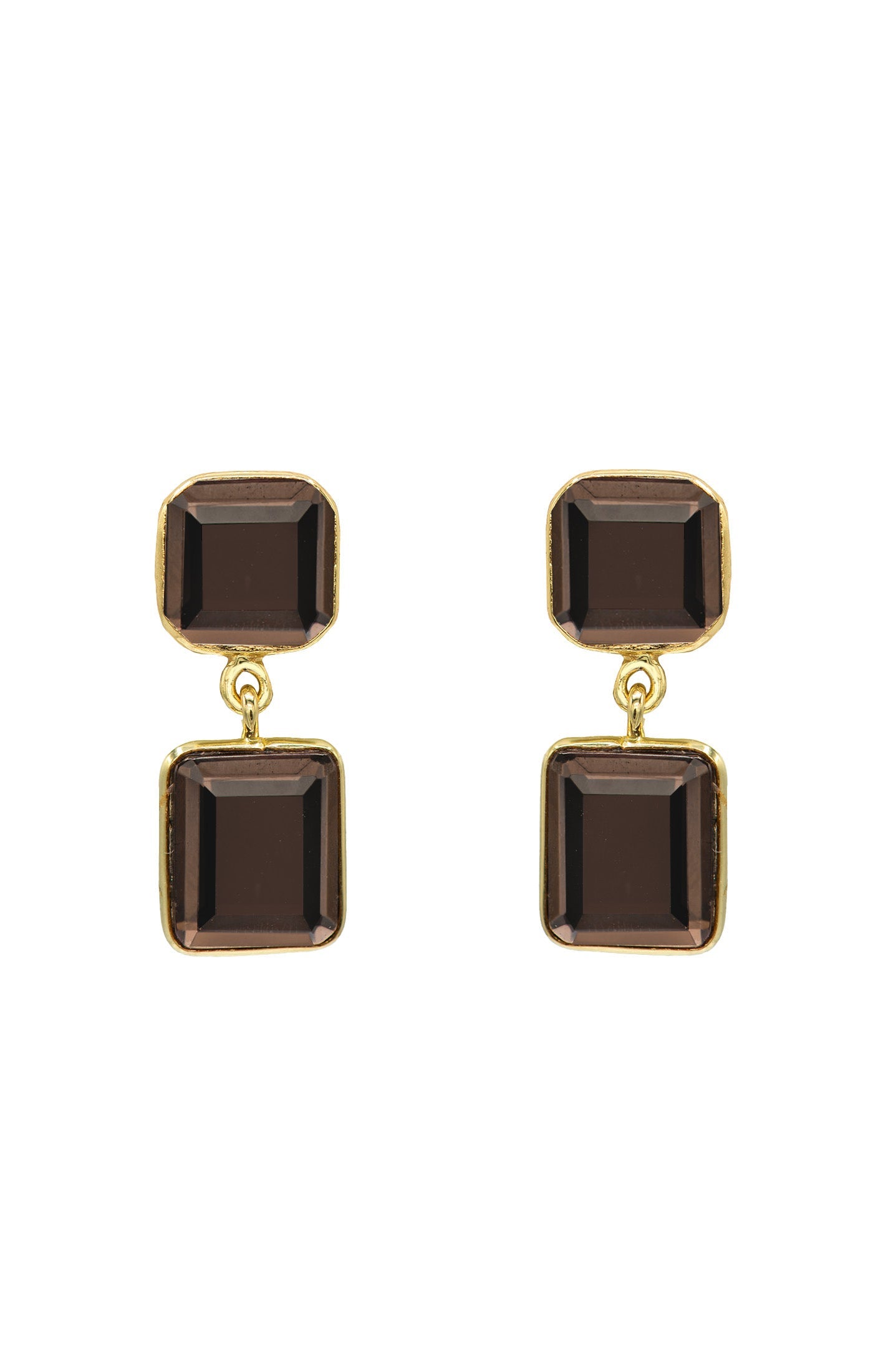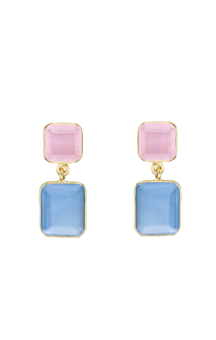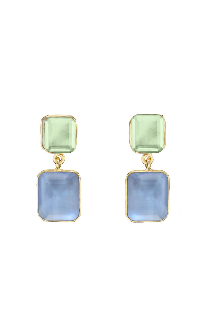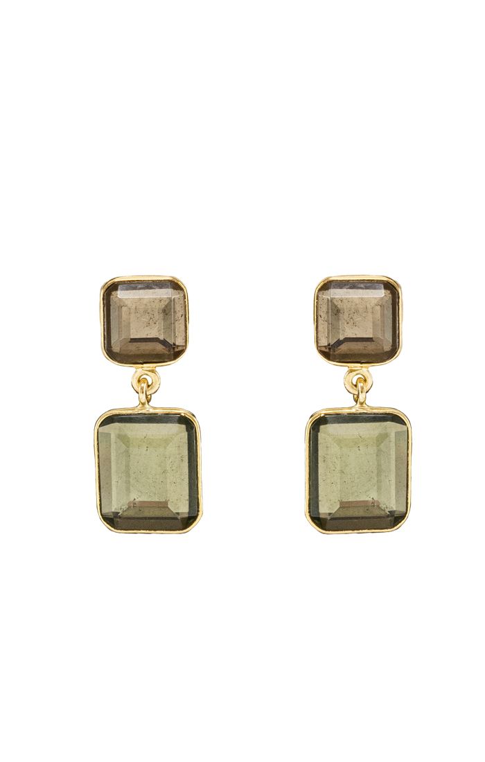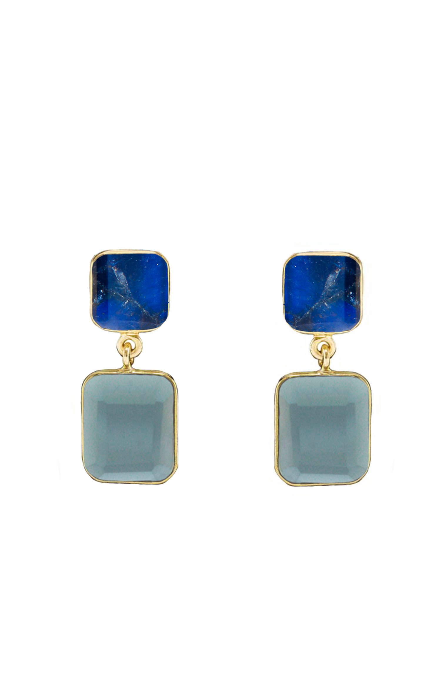 These Melva Stone Earrings by Marcia Moran offer a delicate two-tone rectangular design, perfect for adding a refined touch to any outfit. The natural semi-precious stones ensure each piece is unique.