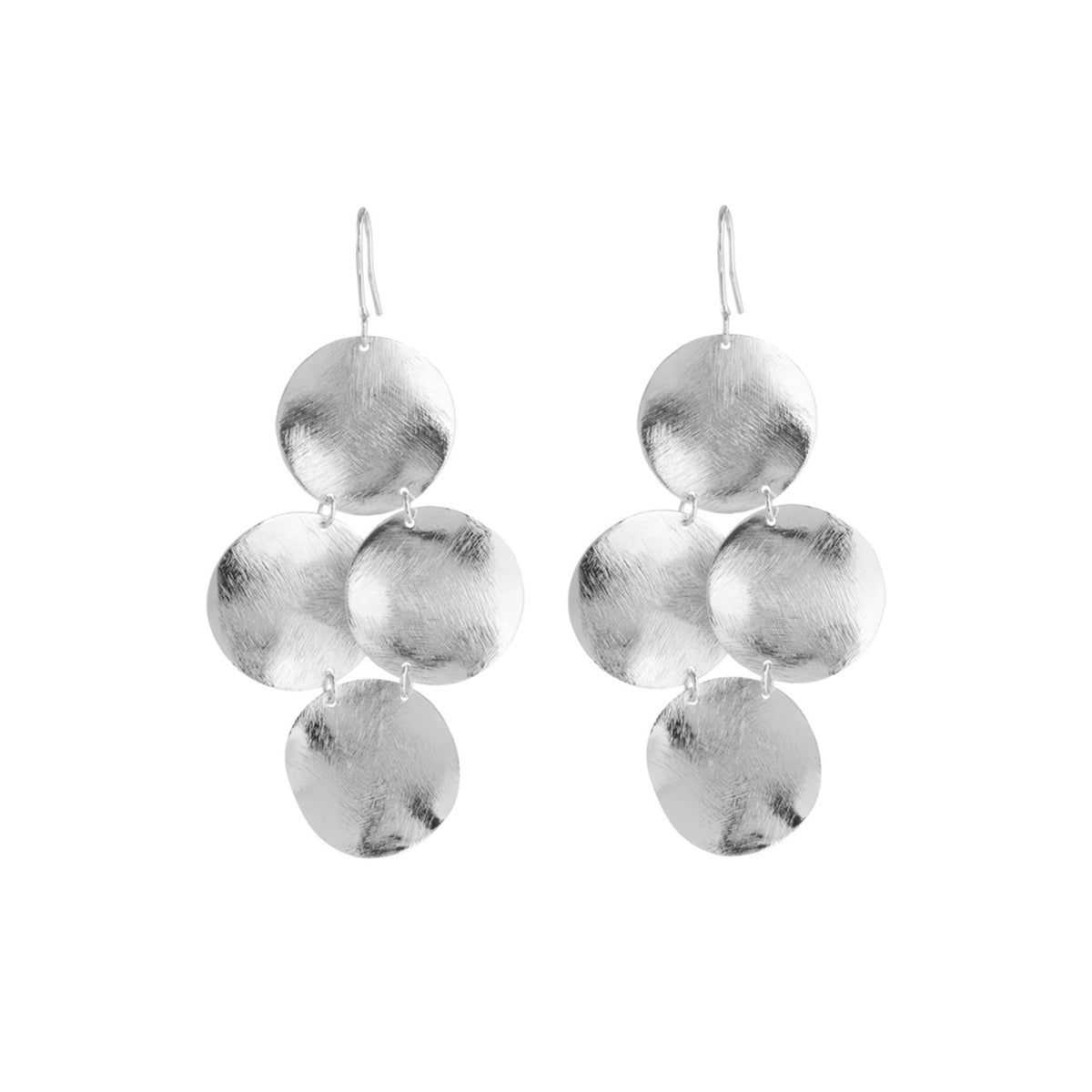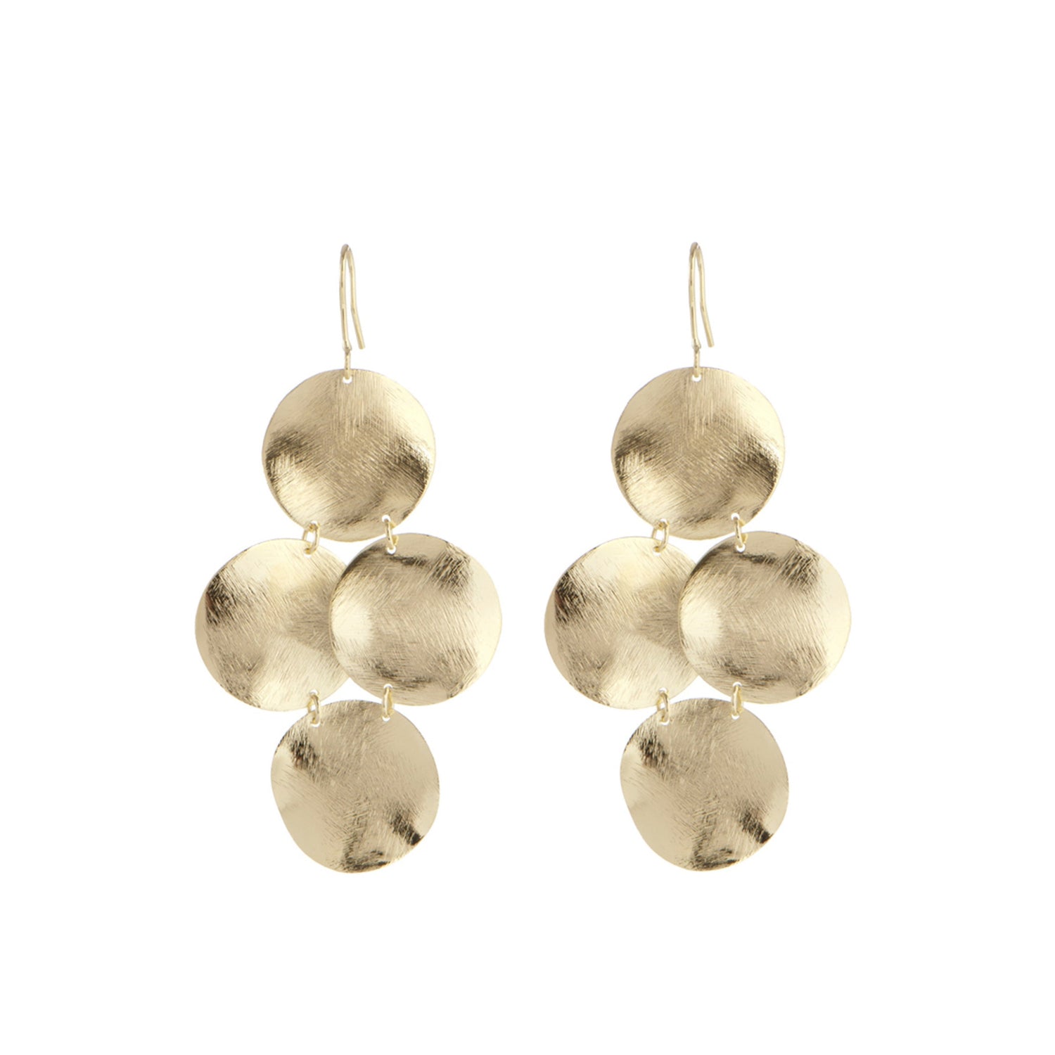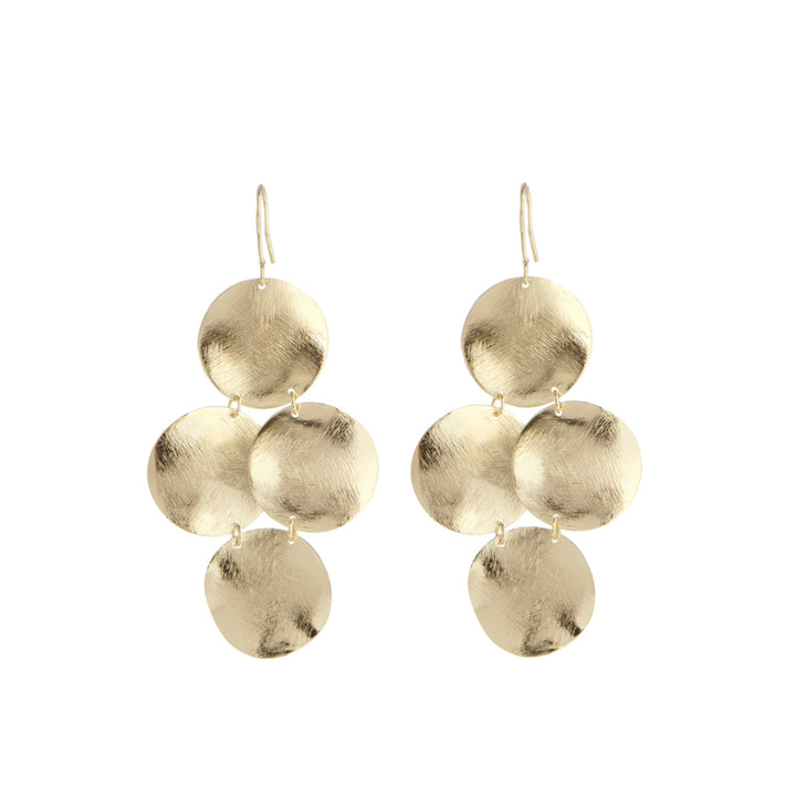 These Frieda Petite Earrings by Marcia Moran are a mini version of the brand’s chandelier earrings, featuring a brushed coin design. Their petite size makes them perfect for adding subtle elegance to any look.