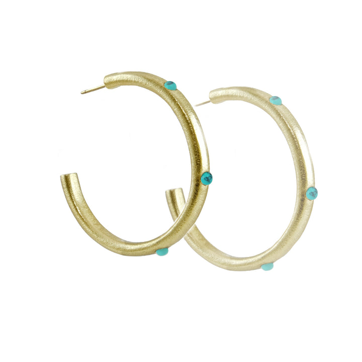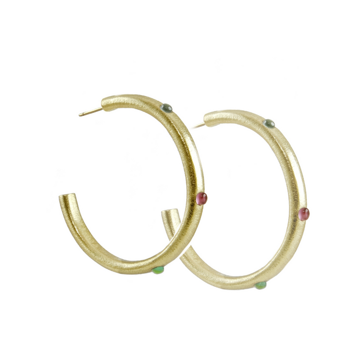 These Milla Embellished Hoop Earrings by Marcia Moran, from the Pontos Collection, add a pop of color to any outfit with their three semi-precious stone embellishments. Their bold hoop design makes them a versatile accessory for day or evening wear.