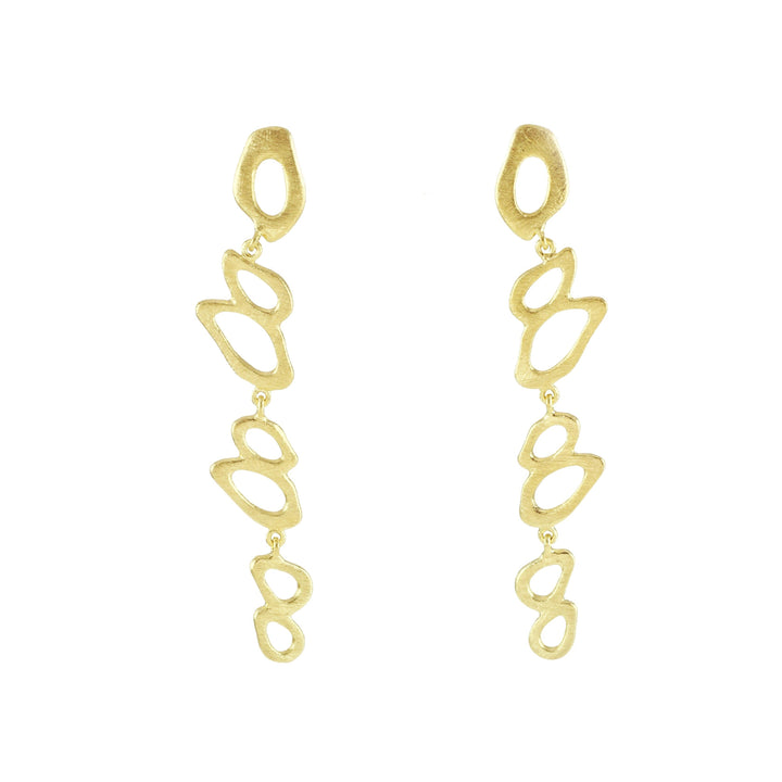These Lucine Earrings by Marcia Moran feature ornate dangle post designs, offering a refined yet eye-catching aesthetic. Their detailed craftsmanship and elegant length make them perfect for special occasions.