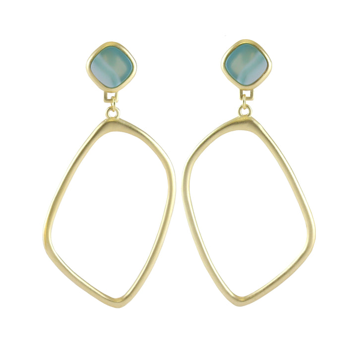 18k gold plated with blue stripe agate stones. Earrings measure 3.75 inches long. Handmade in Brazil.