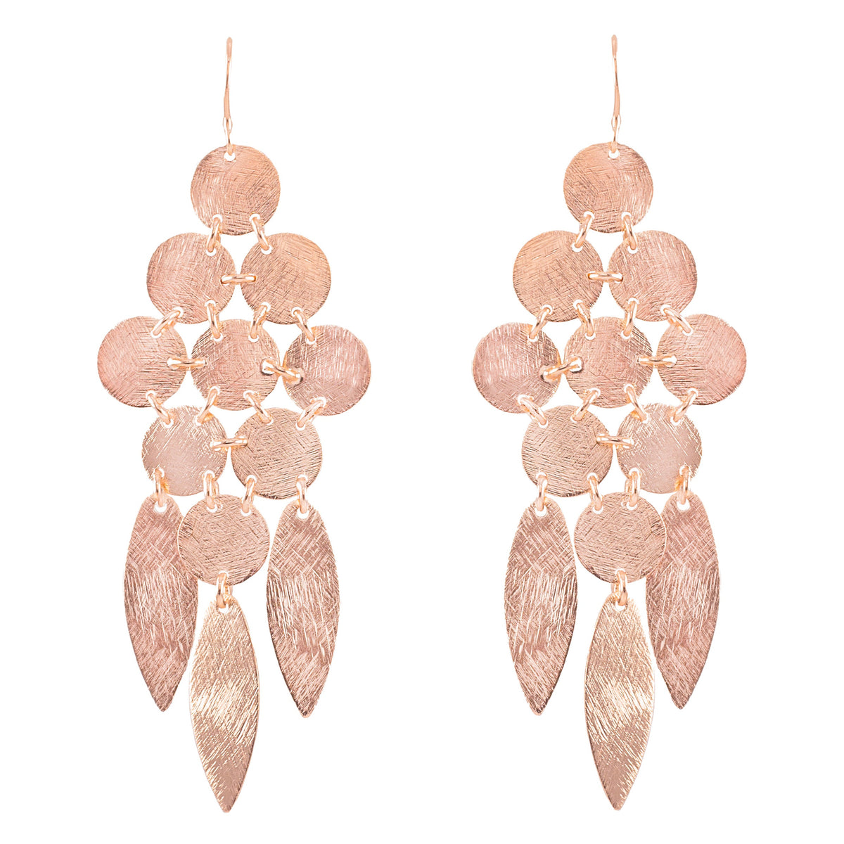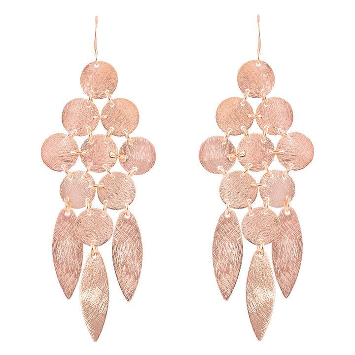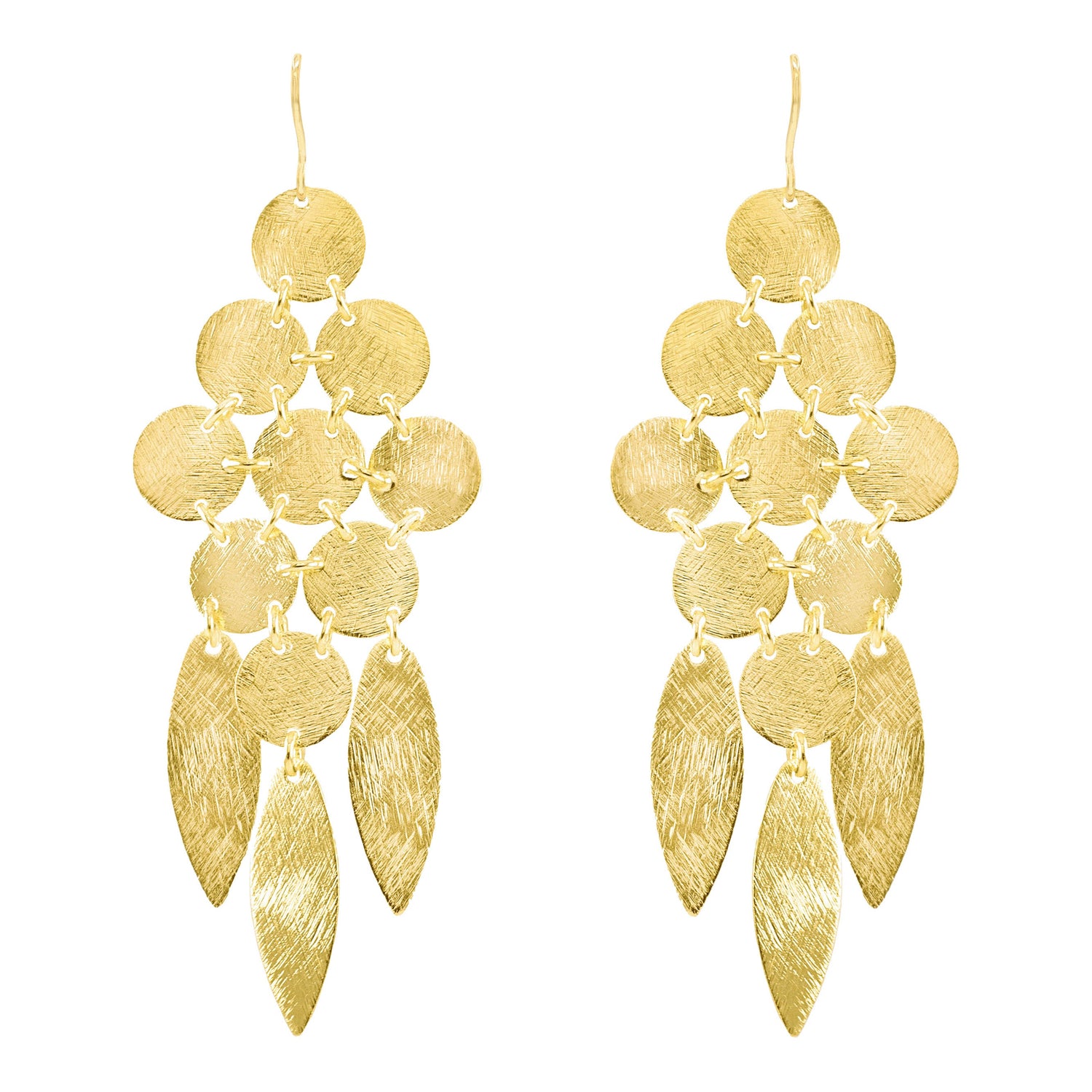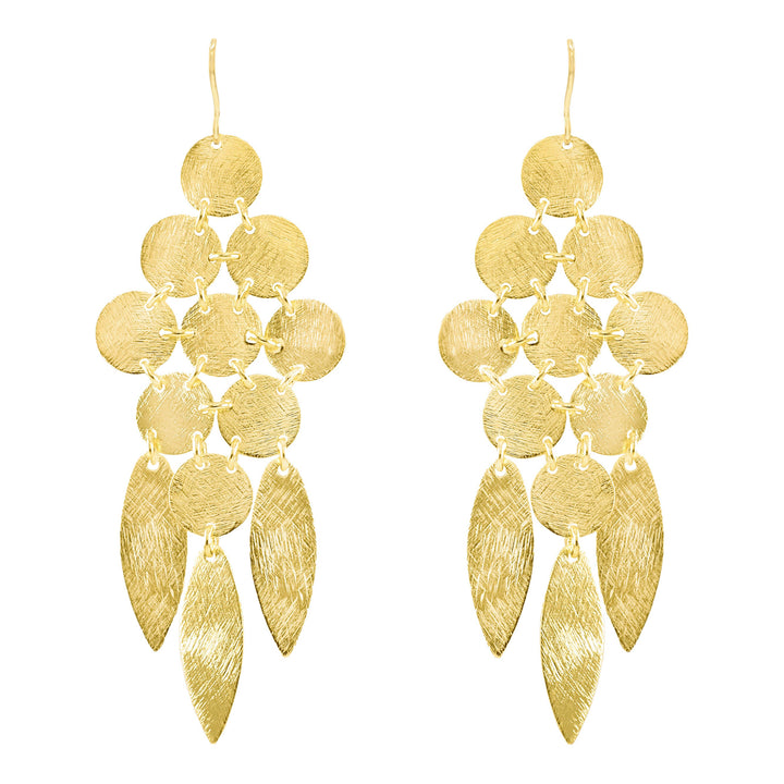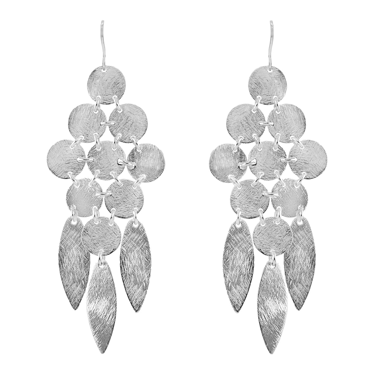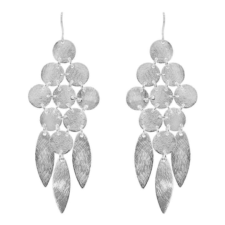 These Beatrix Classic Statement Chandelier Earrings by Marcia Moran feature brushed circle and marquise shapes linked together, creating a statement piece full of movement and elegance. Perfect for both casual and formal occasions, they offer a timeless appeal.